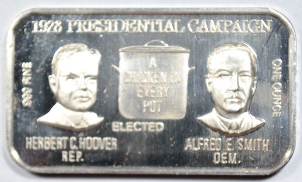 consignor gave us his collection to sell.Most of these are RARE pieces. 1928 PRESIDENTIAL HOOVER/SMITH A CHICKEN IN EVERY POT. EST $100-$150