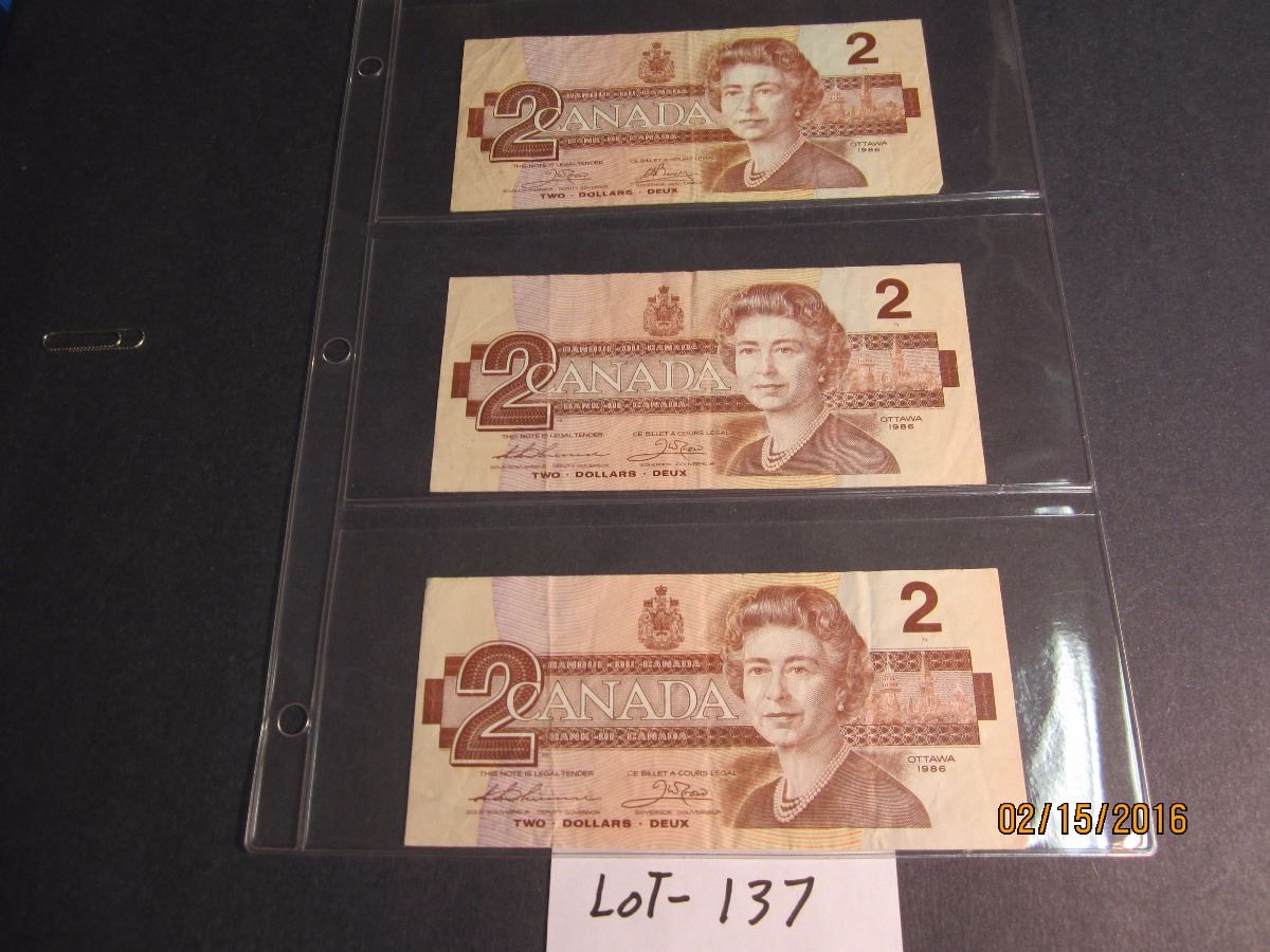1 page of 3 Canadian 1986 Two Dollar Bills