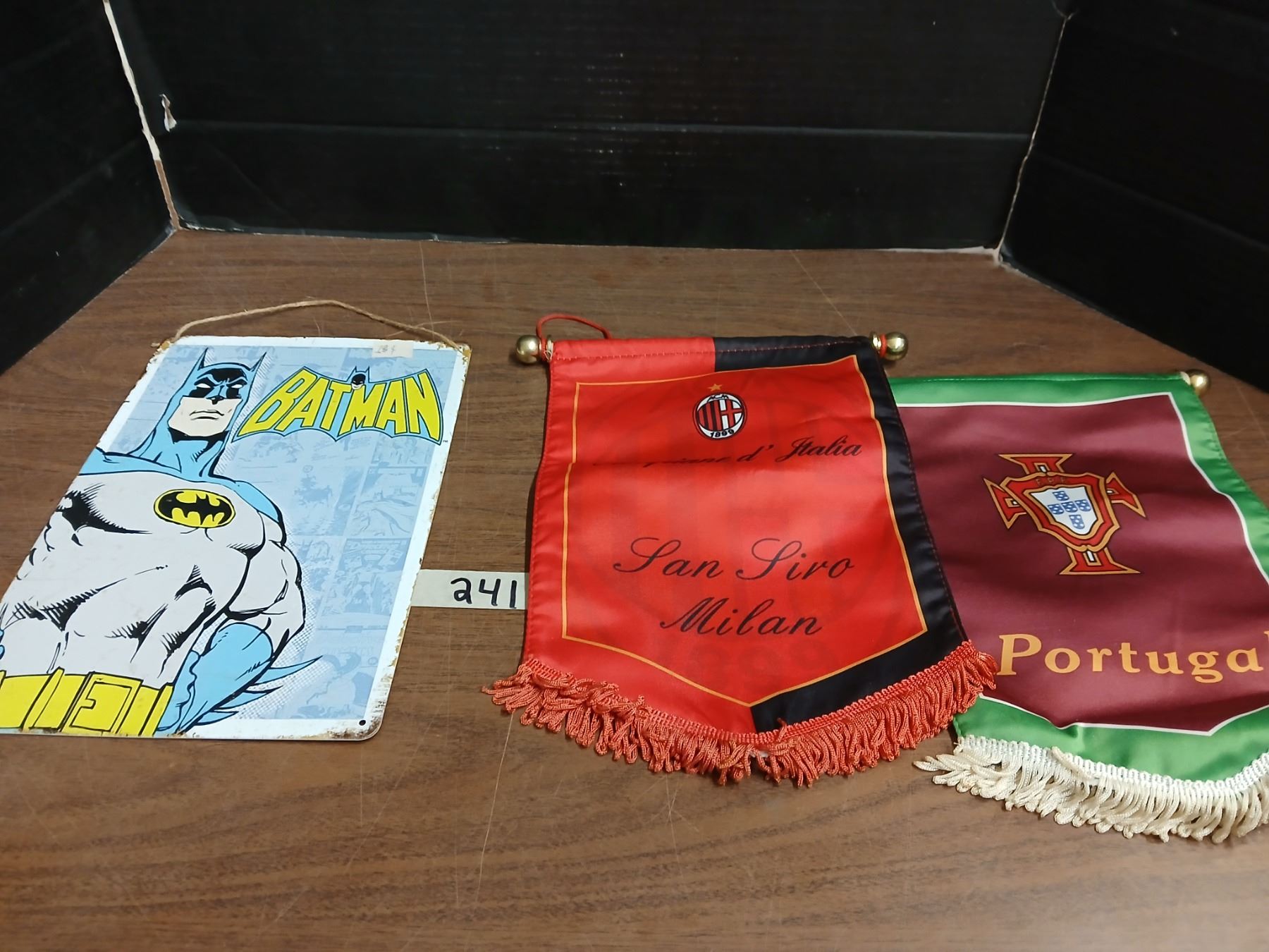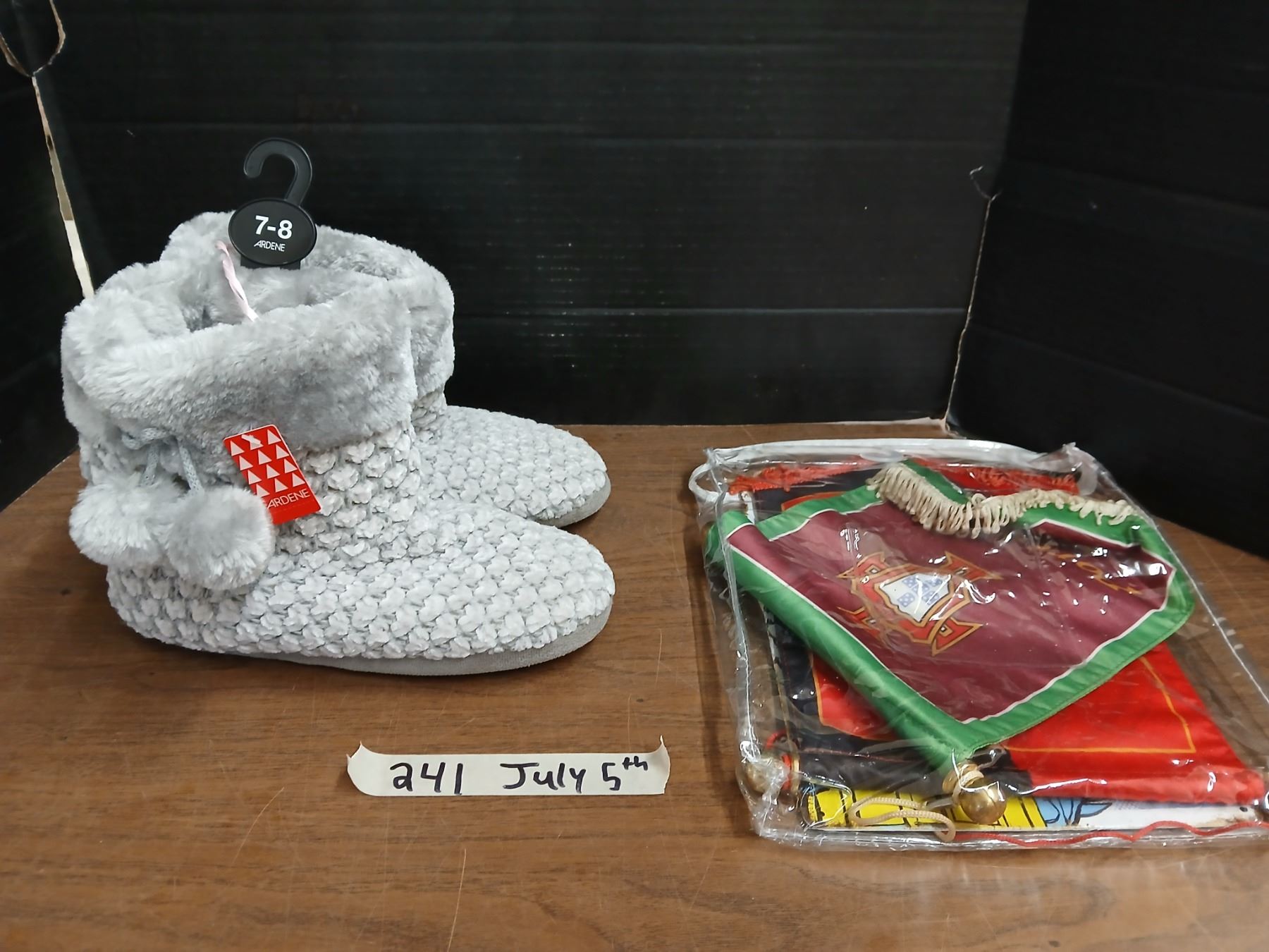 1 pair of Size 7-8 Slippers and 2 Flags with Batman poster.