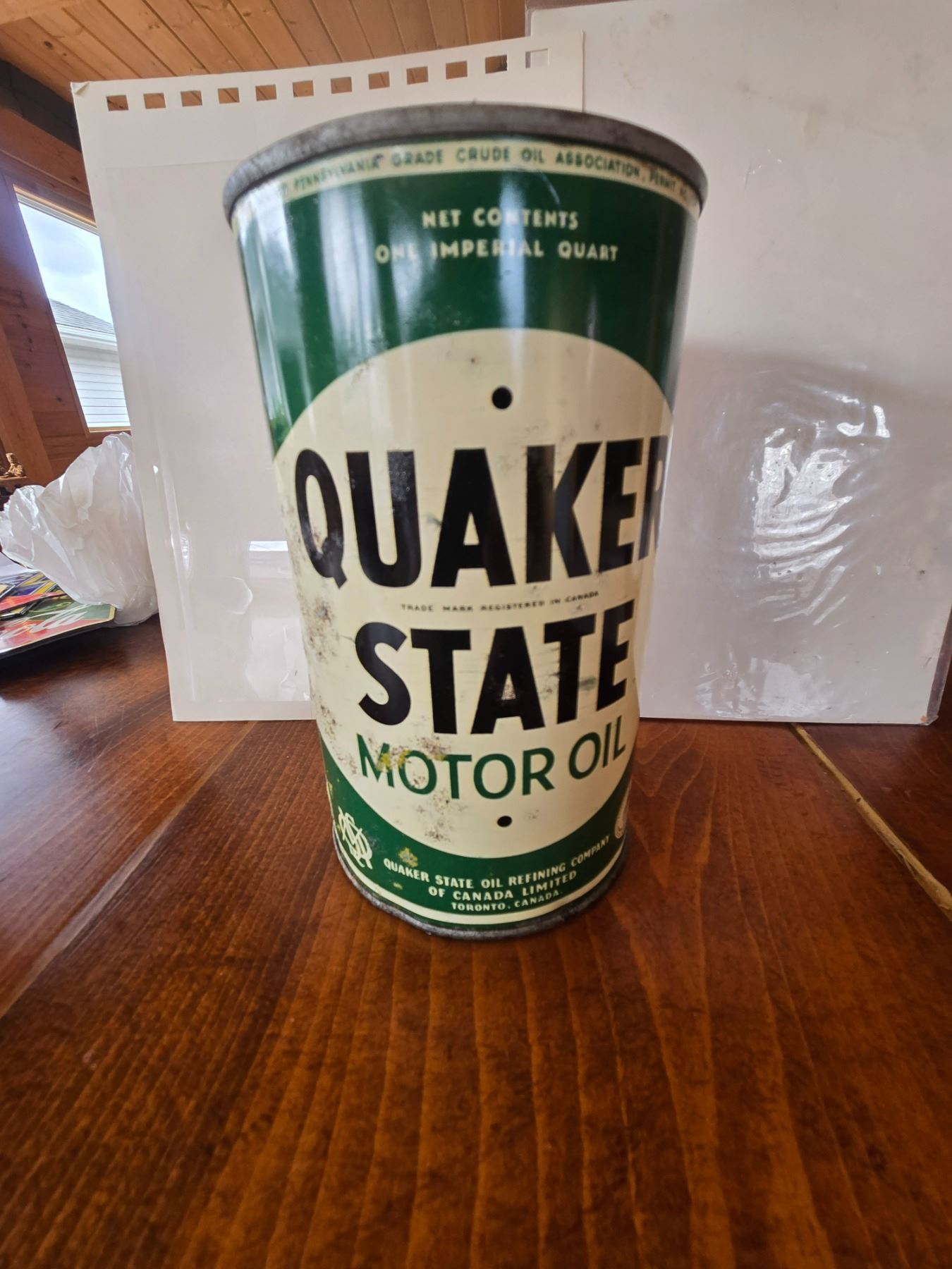 1 quart quaker state motor oil can excellent condition- bottom opened toronto canada