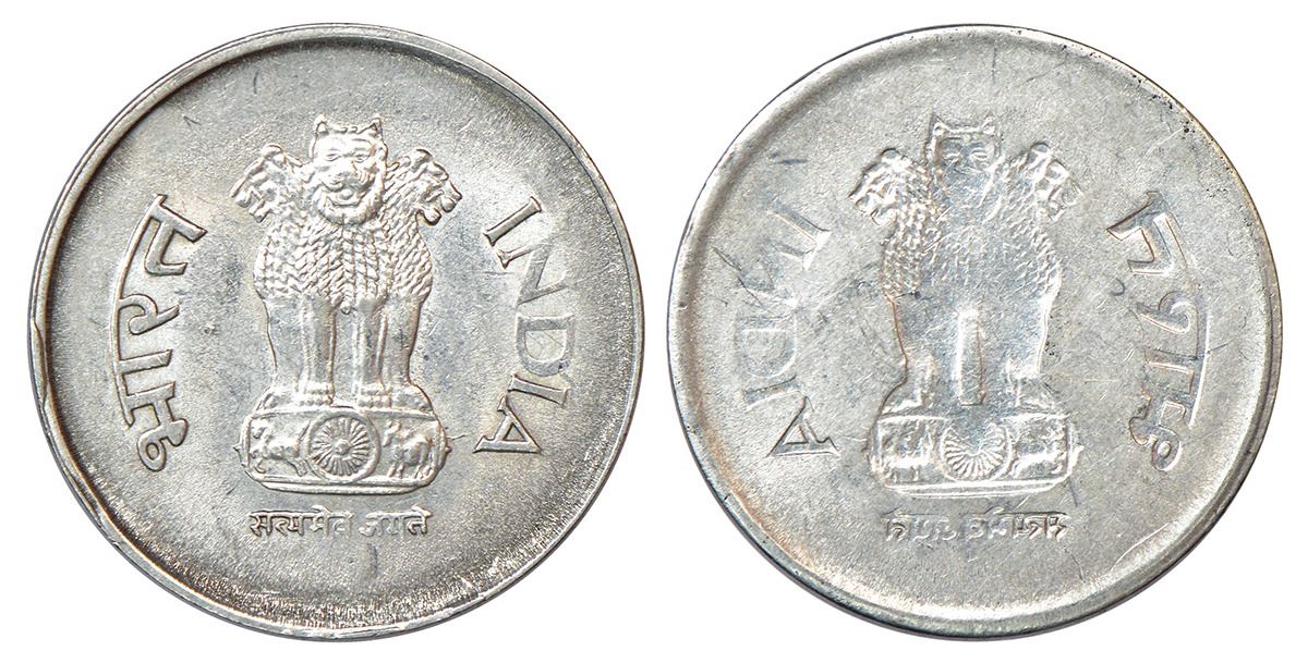 1 rupee, Ferratic Stainless Steel, ND, brockage (Lakhi), showing retrograde impression of obverse on reverse, 4.91g.