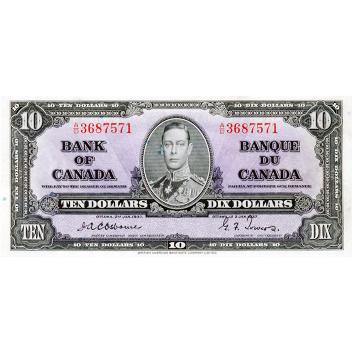$10.00. 1937 Issue. BC-24a. Osborne. No. A/D3687571. PCGS graded Choice AU-55.