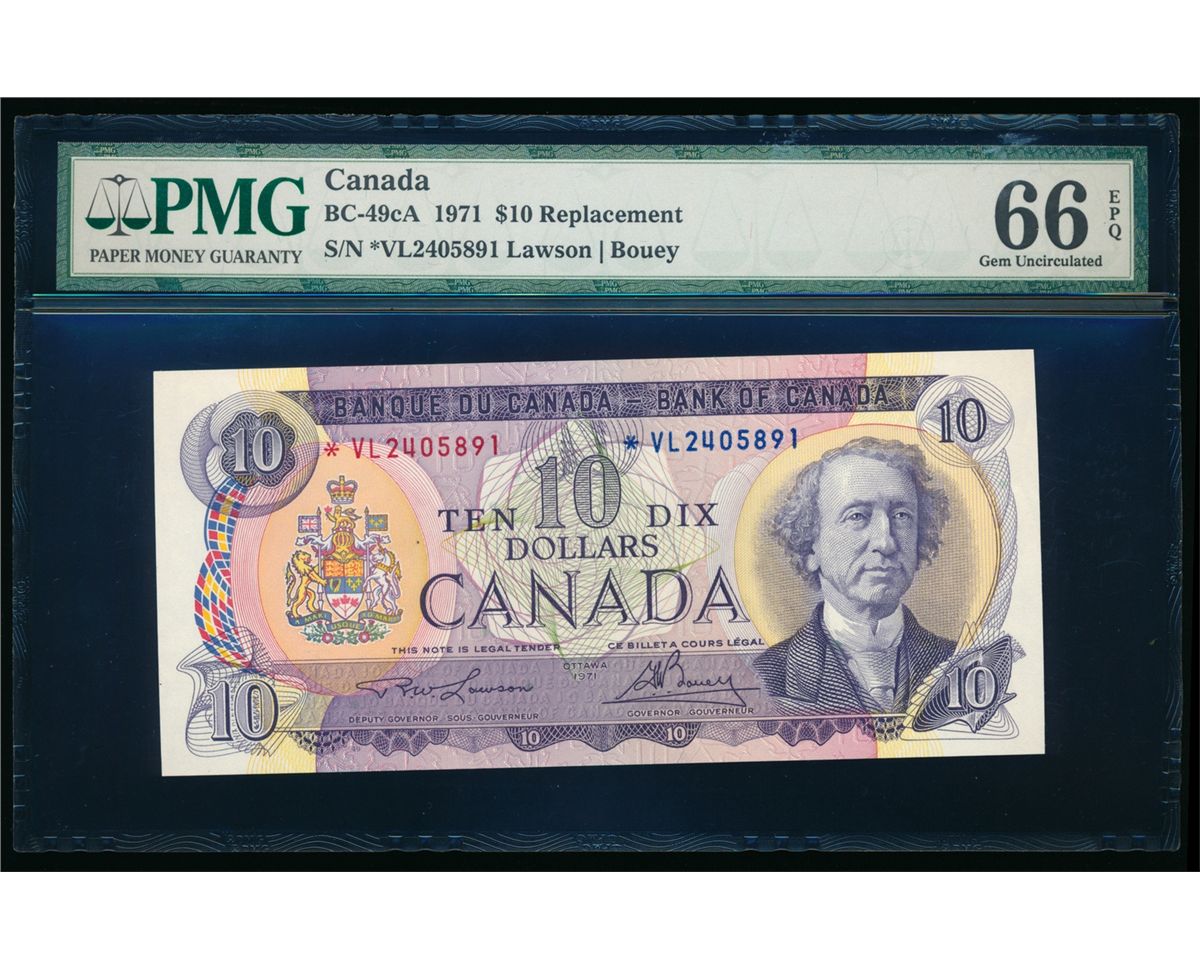 $10.00. 1971. BC-49cA. Lawson-Bouey. Replacement Note. No.*VL2405891. PMG graded Superb Gem Uncirculated-66 EPQ.