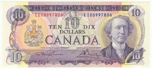 Bank of Canada; $10.00 1971 replacement, BC-49cA-i, AU, signature; Lawson Bouey, serial; EDX0997806.Some handling on the bottom, scarce replacement.