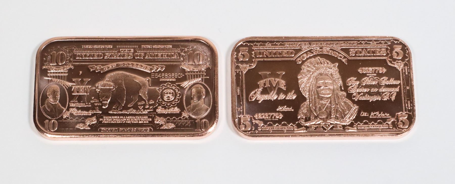 5 DOLLAR INDIAN CHIEF COPPER BAR**ITEM(S) LOCATED IN LETHBRIDGE ALBERTA. ALL ITEMS IN THIS AUCTION ARE ELIGIBLE FOR FREE TRANSPORT TO EDMONTON. EXPECT 1 TO 3 WEEK WAIT FOR ITEMS TO ARRIVE IN EDMONTON. WORLDWIDE SHIPPING THROUGH CANADA POST AVAILABLE
