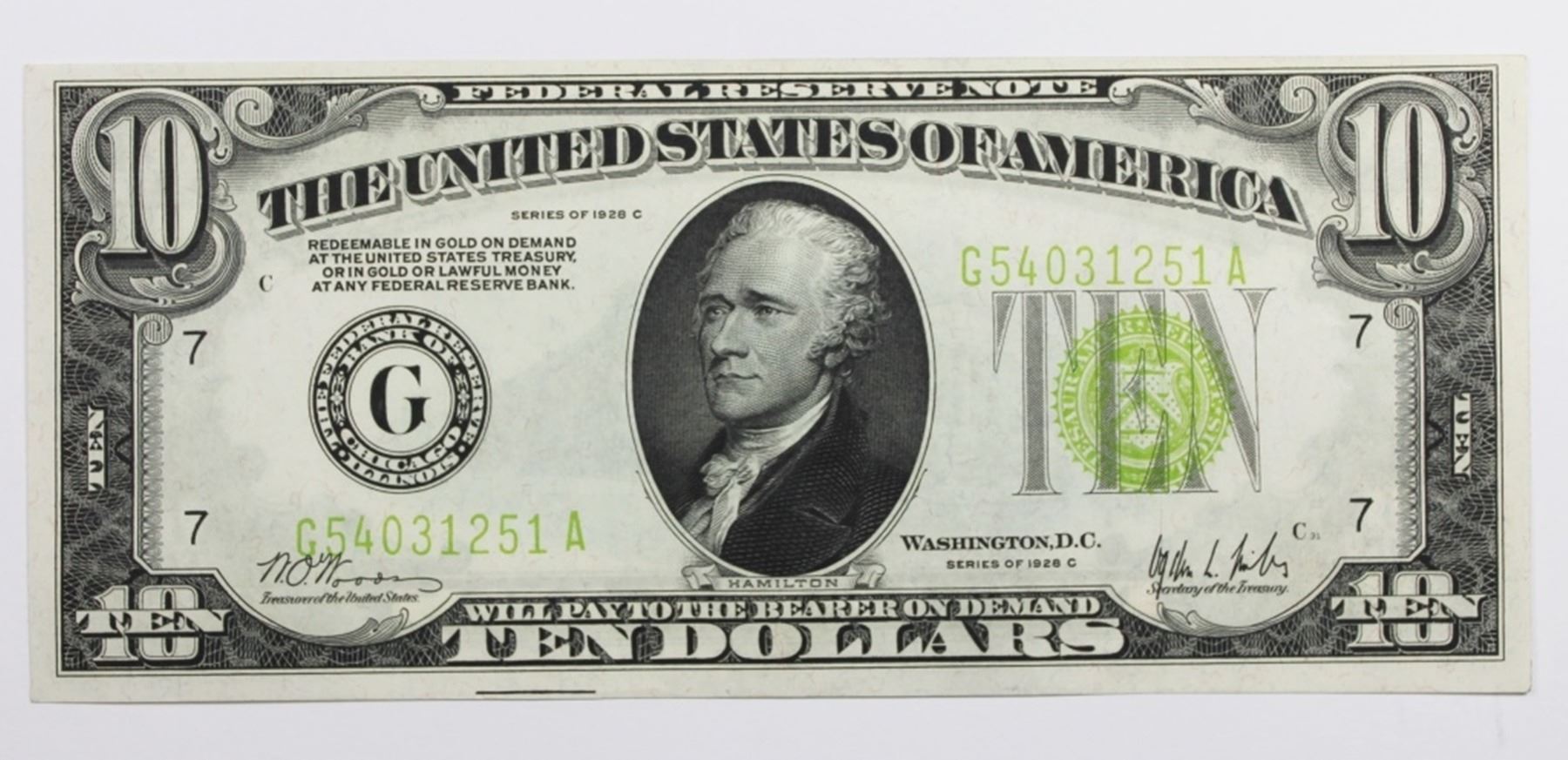 1928-C CHICAGO. UNC. VERY RARE NOTE! ESTIMATE: $500-$600
