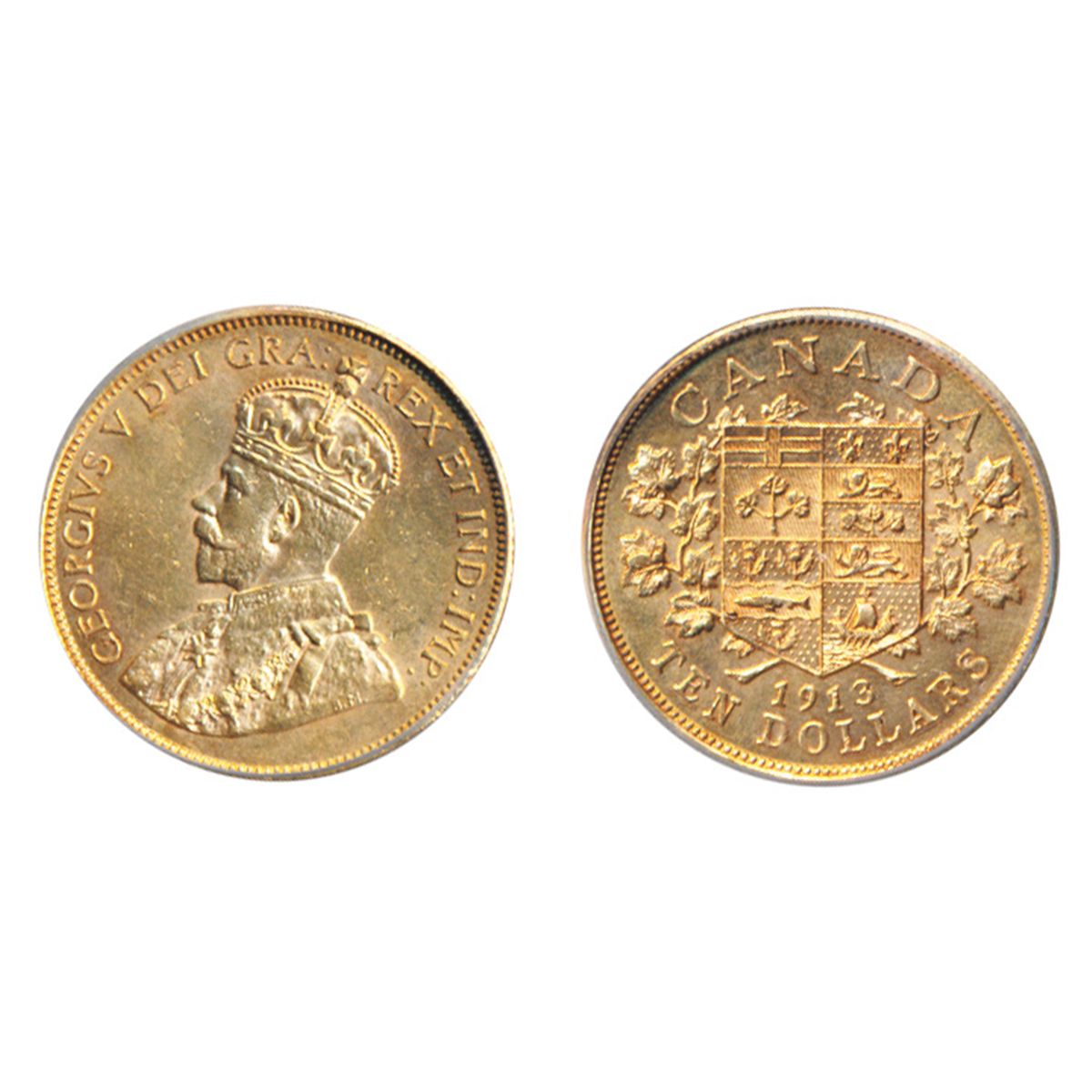 $10.00 Gold. 1913. PCGS graded Mint State-62. Brilliant golden luster.