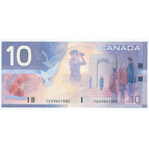 Bank of Canada, $10.00 Insert note 2001, grade Choice UNC, Charlton # BC-63bA, signature Knight Dodge, serial FED9661882, insert range 9.440M - 9.780M. Missing Circle Error and insert note. Problem free note.
