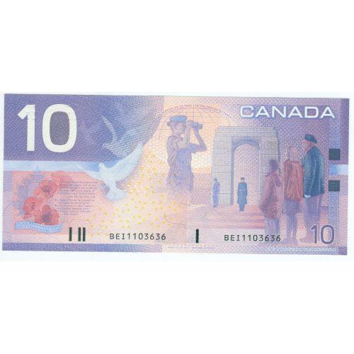 Bank of Canada, $10.00 Insert note 2002, grade Gem UNC, Charlton # BC-63bA-i, signature Knight Dodge, serial BEI1103636, insert range 0.990M - 1.170M. Problem free note.