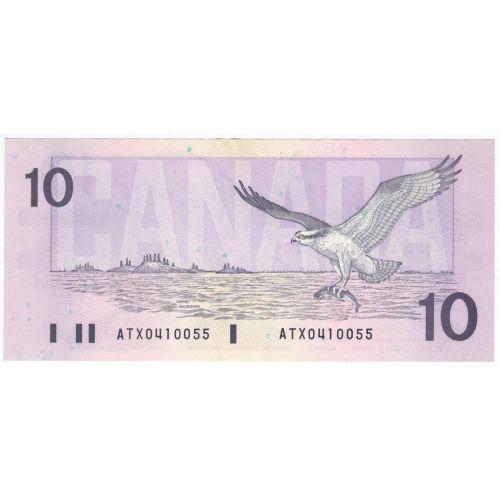 Bank of Canada, $10.00 Replacement note 1989, grade EF-AU, Charlton # BC-57aA, signature Thiessen Crow, serial ATX0410055. Problem free note.