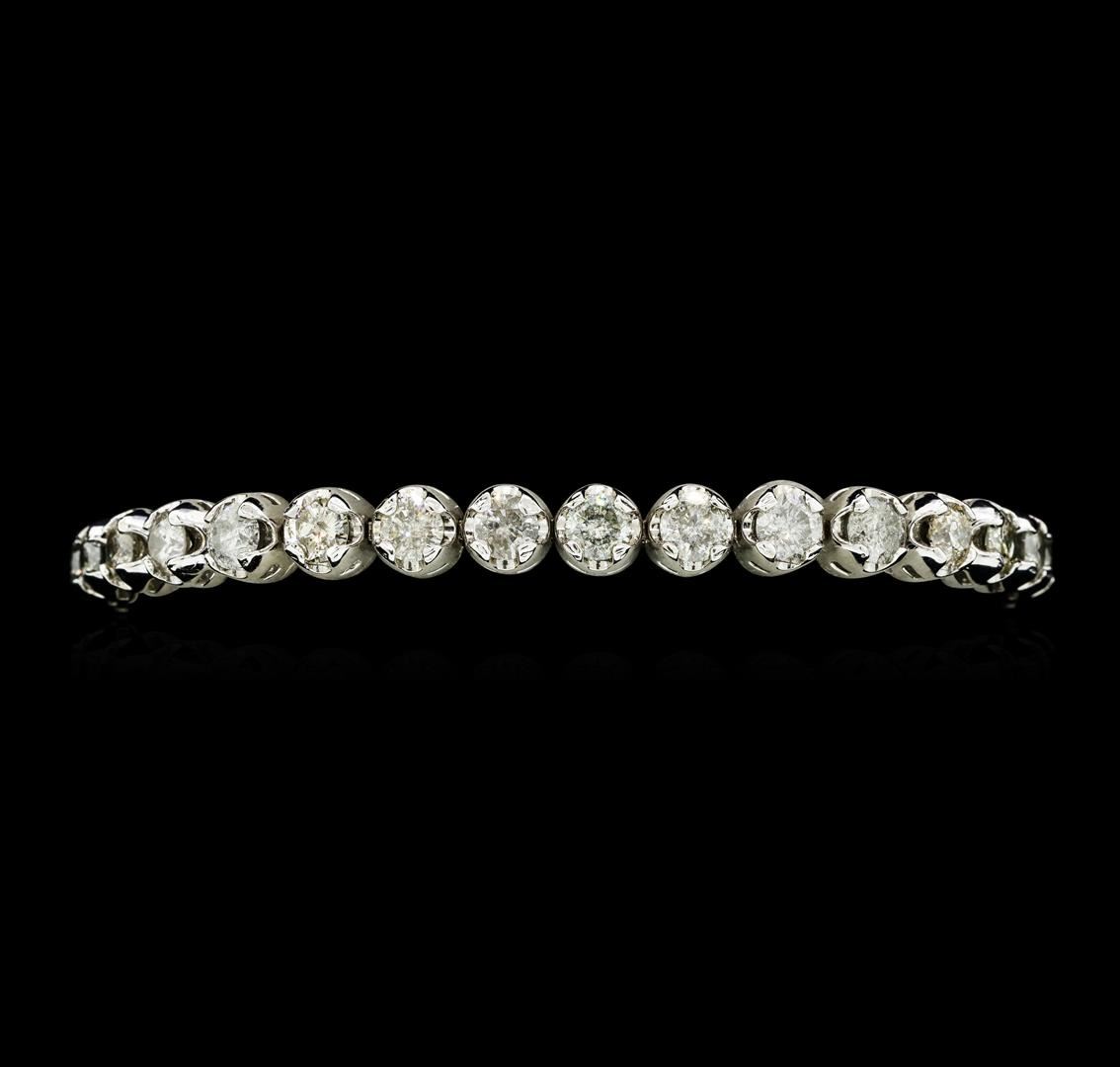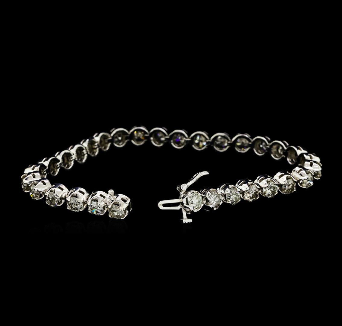 One electronically tested 14KT white gold lady's combination cast & assembled tennis bracelet with a tongue clasp with foldover safety with a bright polish finish. The featured lady's bracelet measures approximately 7.25 inches in length. Identified with markings of '14K'. Condition is new, good workmanship. Containing: Thirty-One prong set round brilliant cut diamonds, measuring 4.50 - 4.30 x 2.73mm (depth est.) approximate total weight of 31 Stones = 10.00ct. Graded in the setting. Color J - L Clarity I-1 to I-2 Cut Good. Total Weight of Diamonds 10.00ct.. Total Weight of Bracelet 20.30gm GAS Appraised at $17485.00. GAS Appraised at $17,485.00.