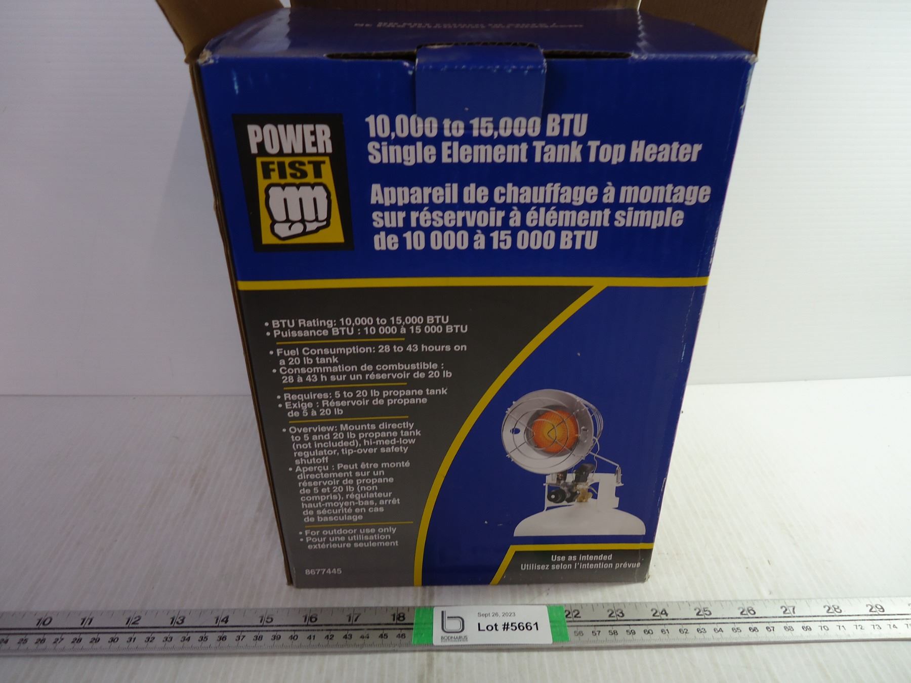 10,000 to 15,000 BTU Single Element Tank Top Heater (NIB)