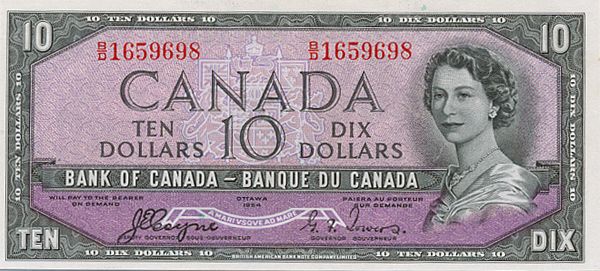 1954 Issue. BC-32a. Coyne-Towers. ‘Devil’s Face’. No. B/D1659698. BCS graded AU-58.