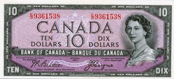 1954 Issue. BC-32b. Beattie-Coyne. ‘Devil’s Face’. No. E/D9361538. A ‘changeover' note. BCS graded Unc-60.
