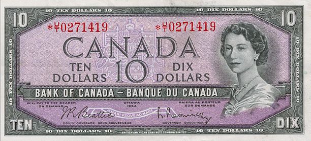 1954 Issue. BC-40bA. Beattie-Rasminsky. No. *U/T0271419. PMG graded VF-35EPQ. Another scarce replacement prefix.