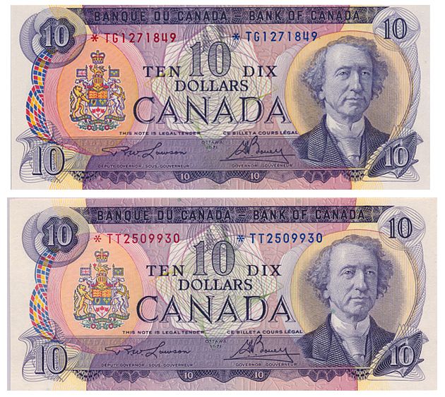 1971 Issue. BC-49cA. Lawson-Bouey. No. *TG1271849. BCS graded Extra Fine-45; No. *TT2509930. BCS graded Extra Fine-40. Lot of two (2) Replacement notes.
