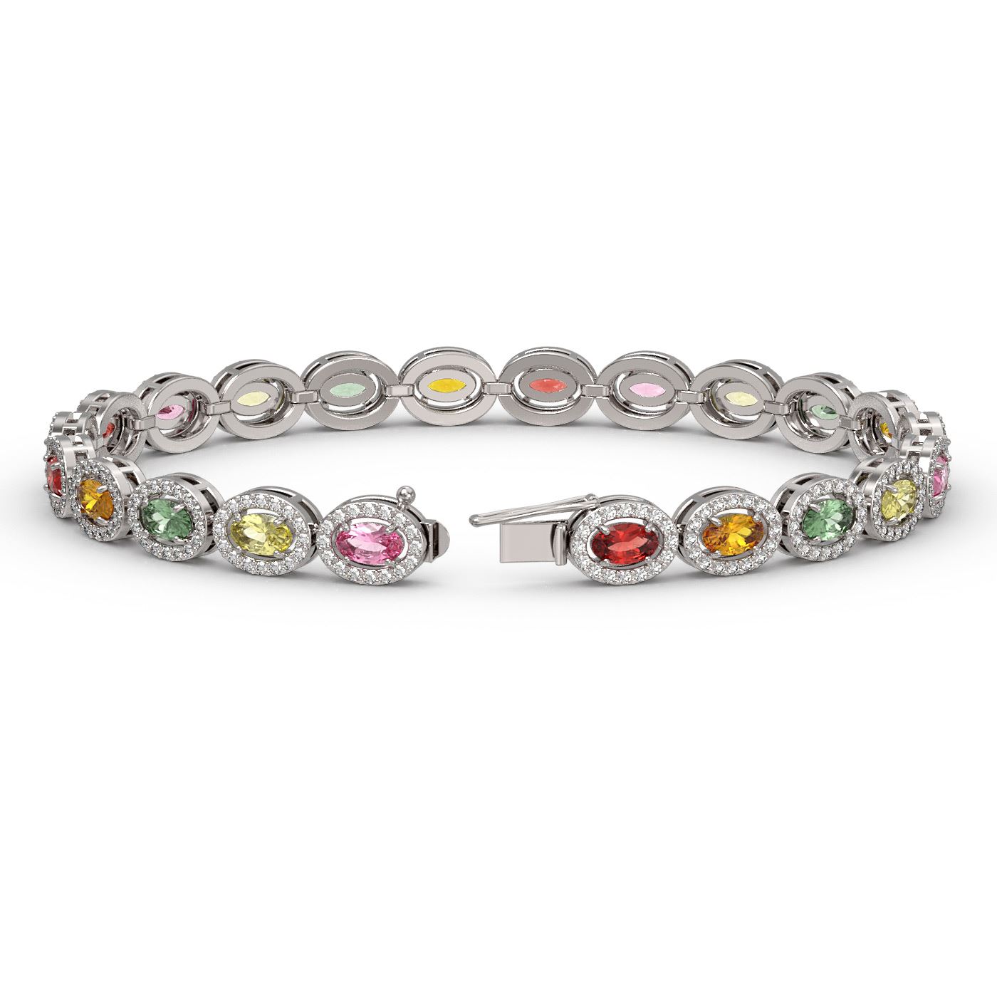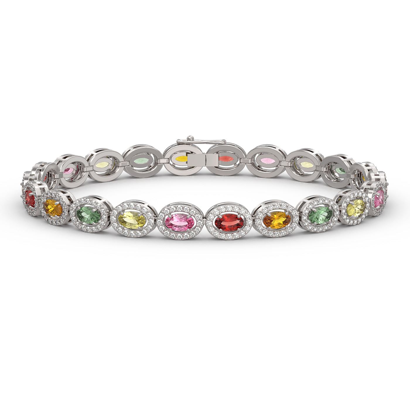 SKU: 40397 ---- 10.04 ctw Multi Color Sapphire & Diamond Micro Pave Bracelet 10k White Gold