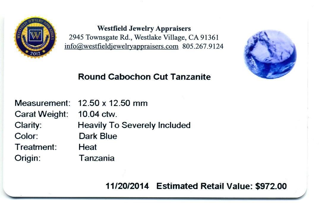 10.04ctw. Round Cabochon Cut Tanzanite. Westfield Appraised at $972.00.