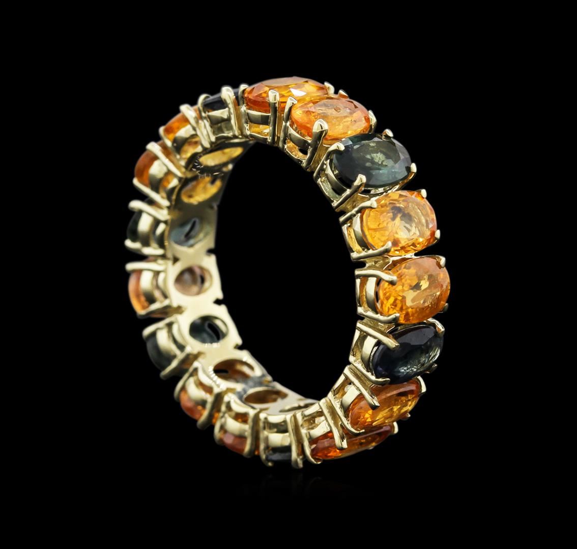 One ring featuring: 14KT yellow gold weighing 3.93 grams containing 17 green and orange sapphires with a total weight of 10.05ct.