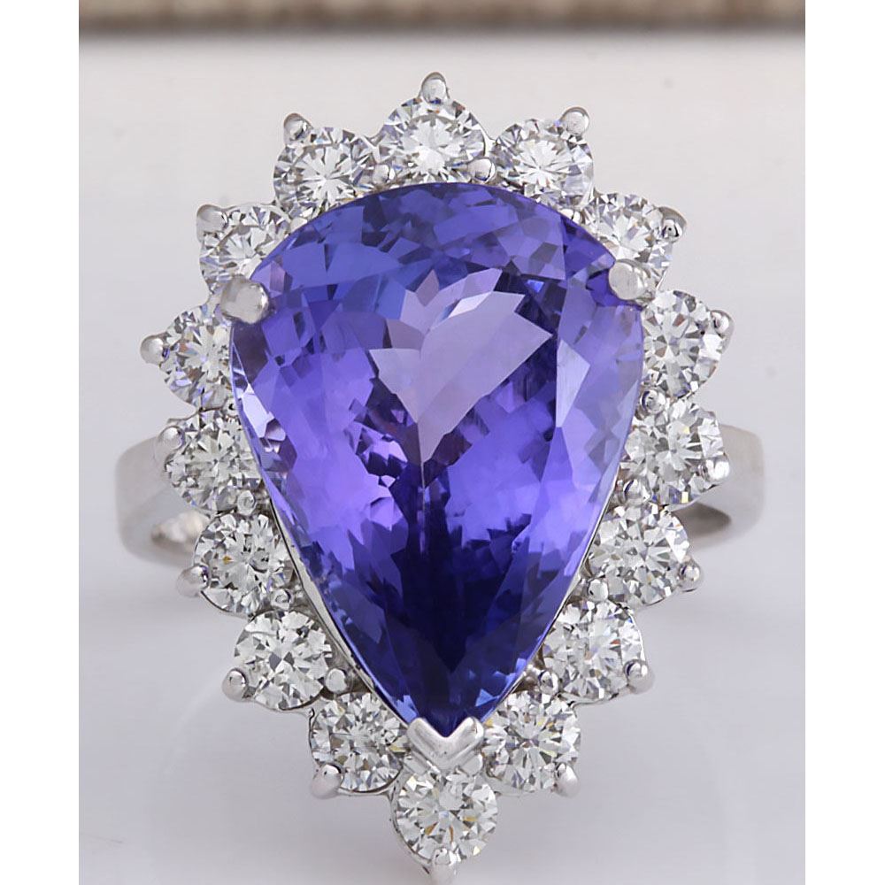 10.06CTW Natural Blue Tanzanite And Diamond Ring In 18K White Gold