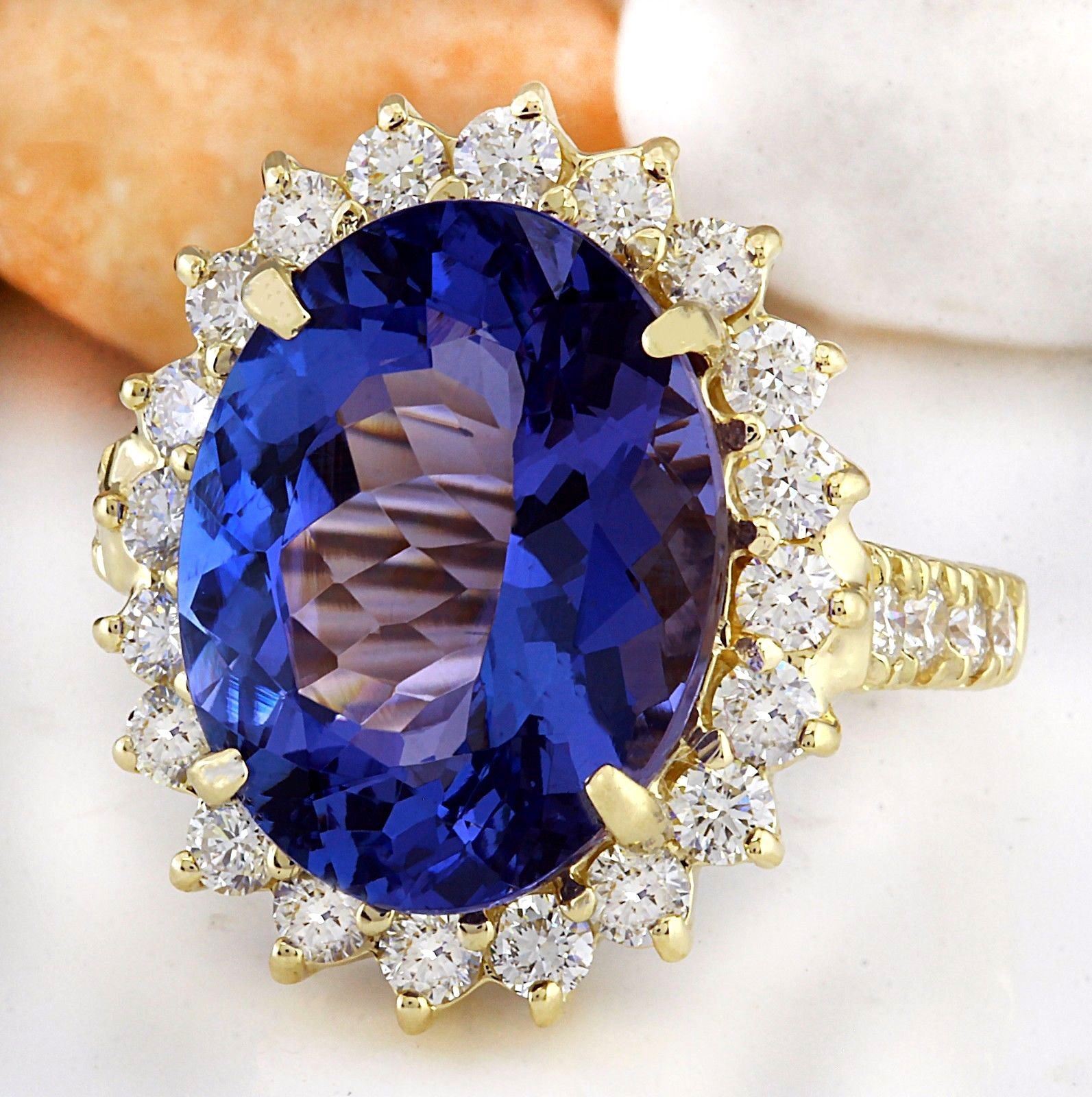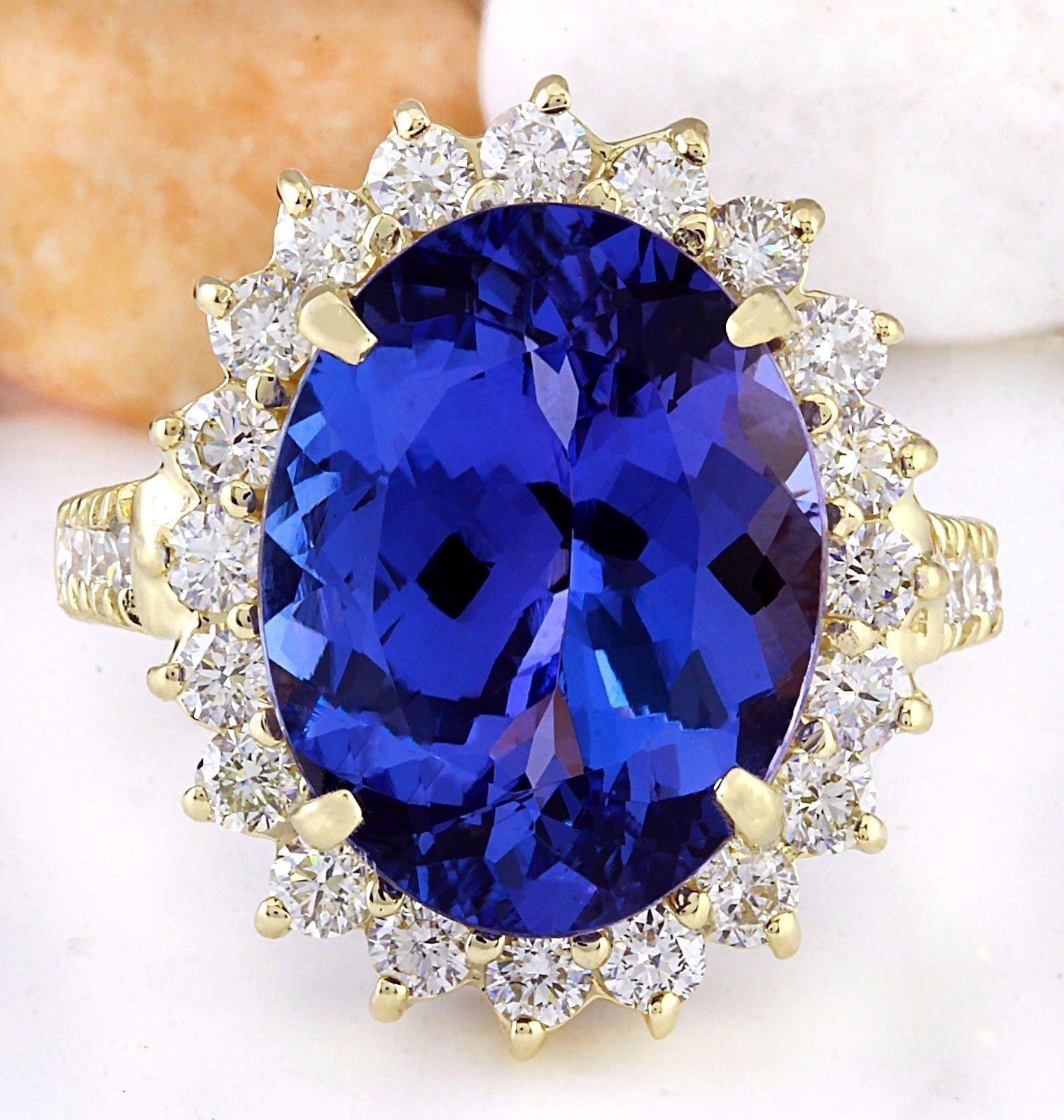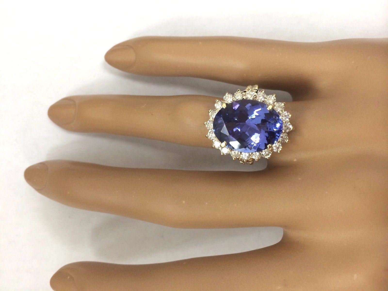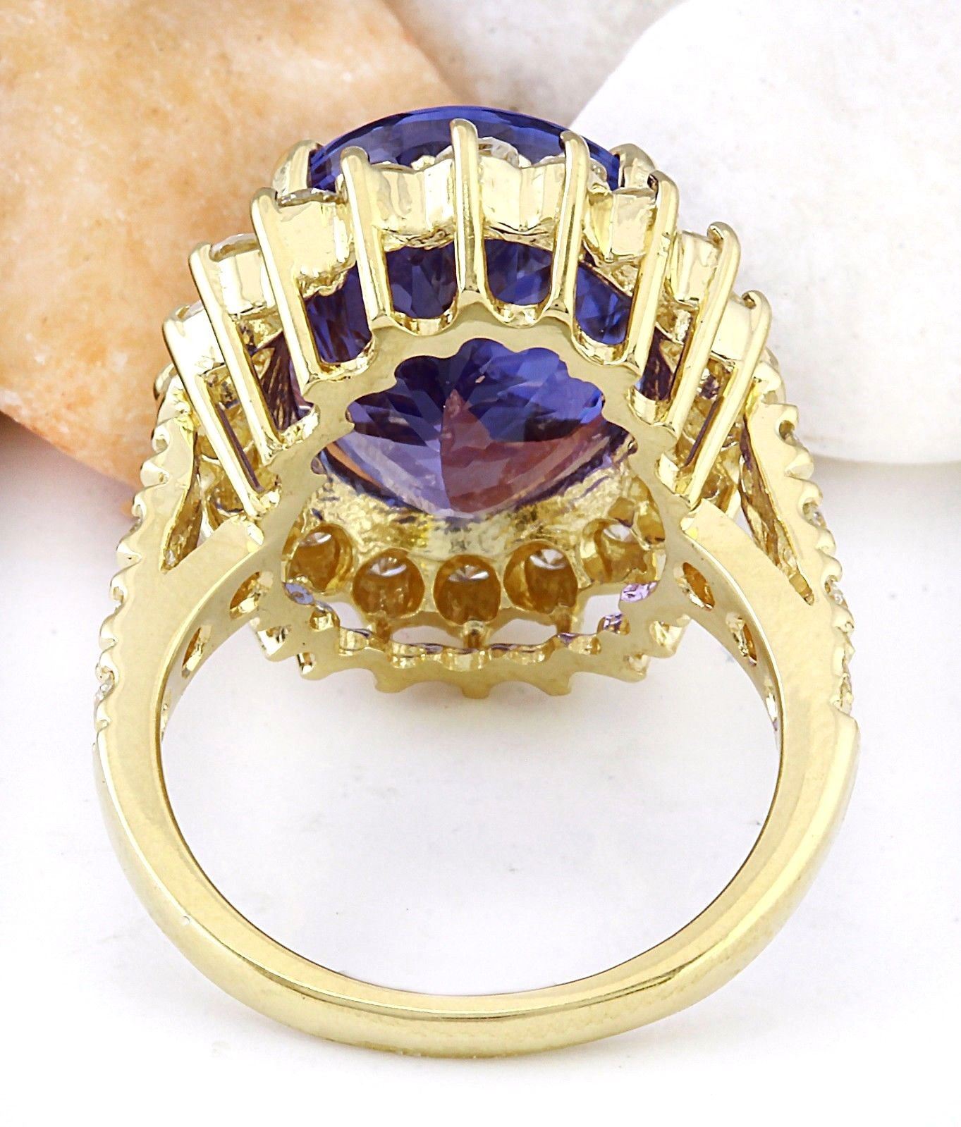 10.08 Carat Natural Tanzanite 14K Solid Yellow Gold Diamond Ring