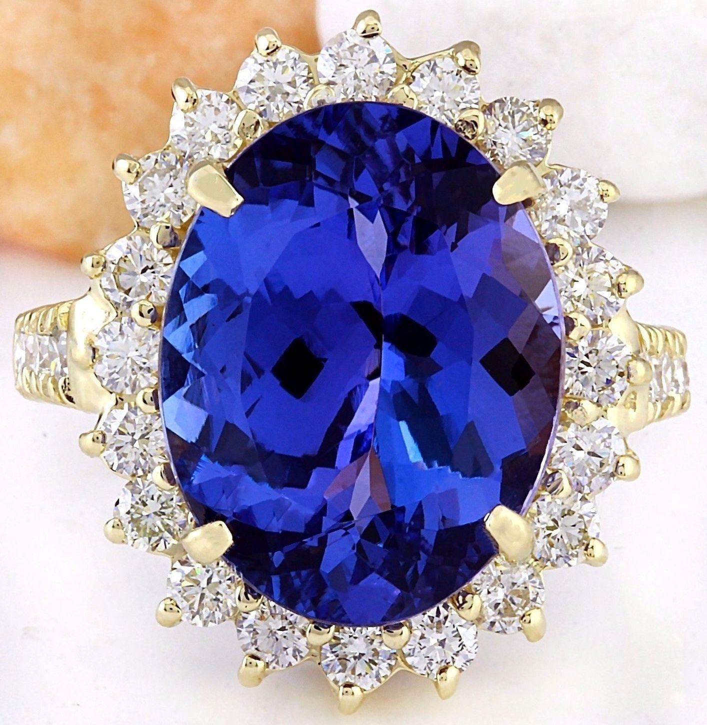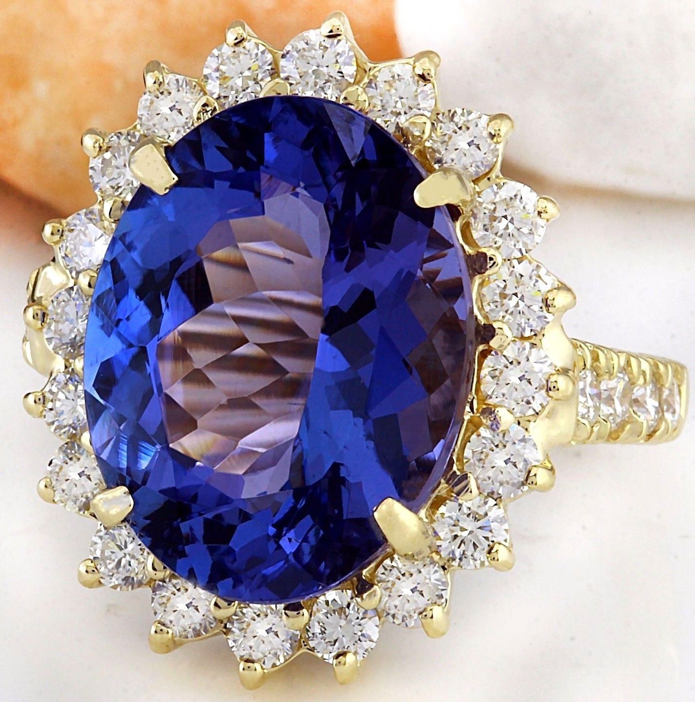 10.08 Carat Natural Tanzanite 18K Solid Yellow Gold Diamond Ring