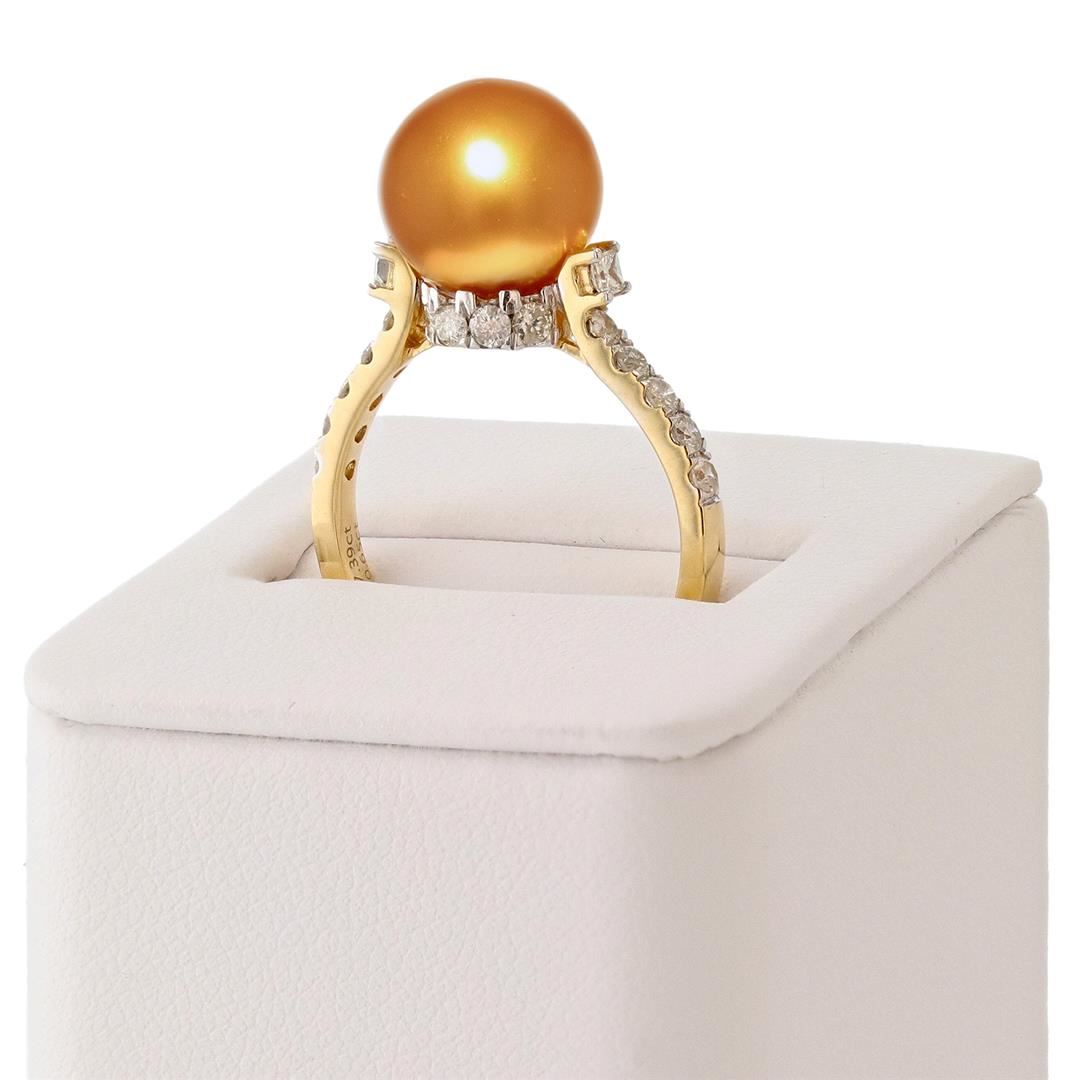 One set electronically tested 18KT yellow gold ladies cast south sea cultured pearl & diamond ring. Condition is new, good workmanship. Featuring a south sea cultured pearl set within mirroring diamond set shoulders, completed by a two millimeter wide band. Trademark is Orianne. Identified with markings of "18K". Containing: One south sea cultured pearl, 10.0mm in size to 10.0mm in size. The pearl is dark golden in color with a good luster, near round, mostly clean Graded in the setting. South Sea Cultured Pearls are farmed in the ocean waters throughout Australia, the Philippines, Indonesia, and the southern coast of China. Australia's main culturing industry is located near the city of Broome, in the northwest, on the Kimberley coast. South Sea cultured pearls form in the Pinctada Maxima oyster, the world's largest (up to 34cm) pearl cultivating oyster. The Indian & Pacific Ocean, the Java & the South China Sea, are the native waters of the Pinctada Maxima oyster. There are two varieties of the Pinctada Maxima: the Gold Lipped oyster which produces the golden color pearls, and the Silver Lipped oyster which produces white color pearls. The South Sea cultured pearl takes from about two to three years to grow. It is produced by inserting a large bead into the oyster when it is about two years old. The South Sea pearl nacre has a unique satiny appearance, due partly to the fast moving and clean waters on the South Seas. Twenty prong set round & princess cut diamonds approximate total weight of 20 Stones = 0.65ctw. Graded in the setting. Clarity SI-2 to I-2 Color J - L Total Weight of Diamonds 0.65ctw. Total Weight of Ring 4.90 gm