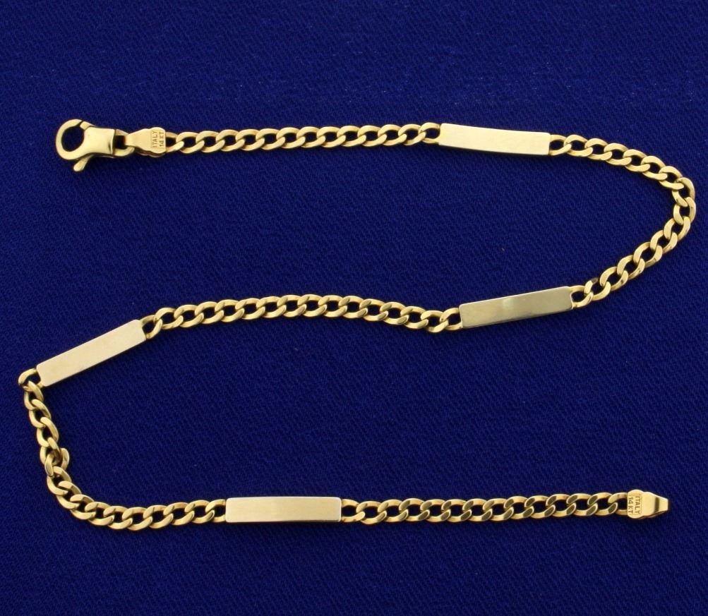 In 14k yellow and white gold. 3.2mm wide with lobster clasp. 7.3g.