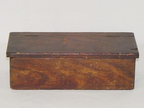 10 1/2" NEW ENGLAND GRAIN PAINTED LIFT TOP CANDLE BOX - IMPERFECTIONS & WEAR