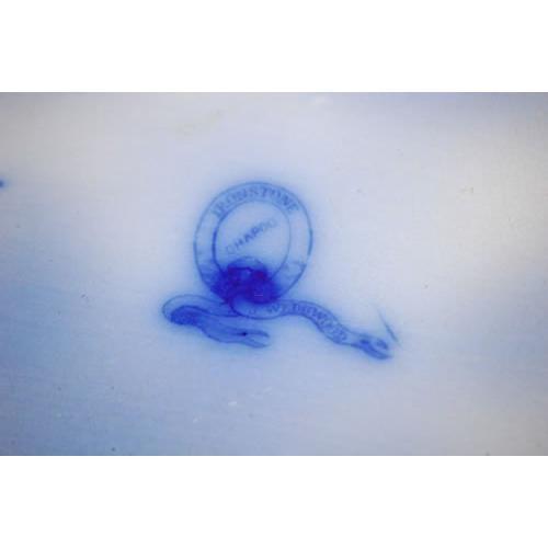 10 1/4" CHAPOO FLOW BLUE OCTAGONAL PLATTER-MARKED WEDGWOOD IRONSTONE (10 1/4" X 7 1/2") - GLAZE CRAZING, SCRATCHES, IMPERFECTIONS