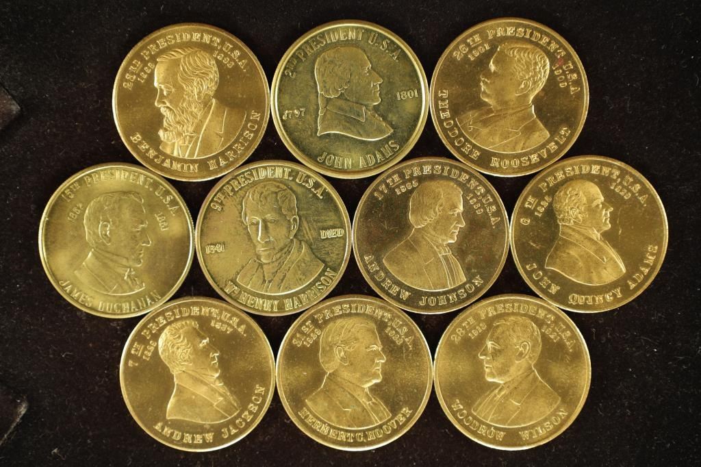 ADAMS, BENJAMIN HARRISON, ANDREW JACKSON & OTHERS. EACH HAS INFORMATION ABOUT THE PRESIDENT ON THE REVERSE.
