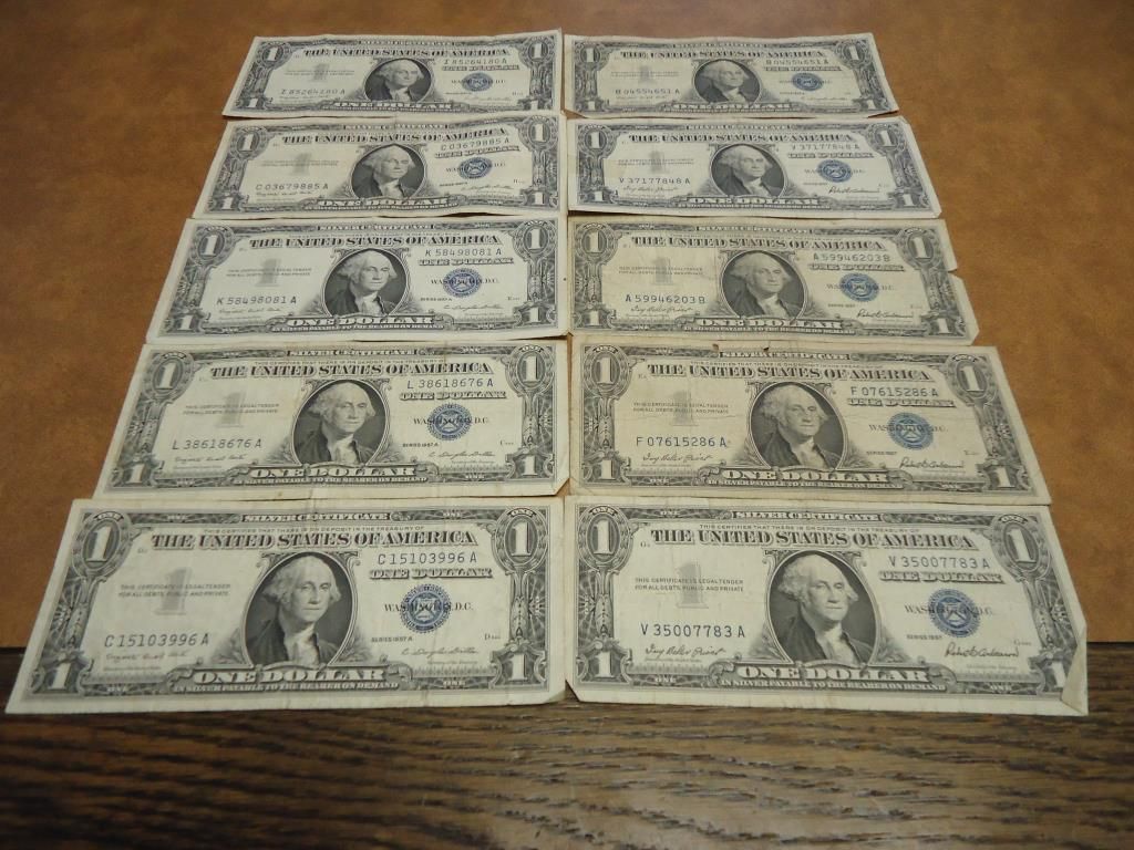 10-$1 SILVER CERTIFICATES 4-1957 & 6-1957-A