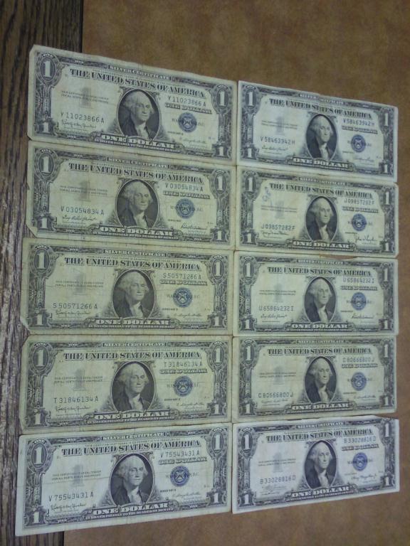 10-$1 SILVER CERTIFICATES 5-1935 & 5-1957