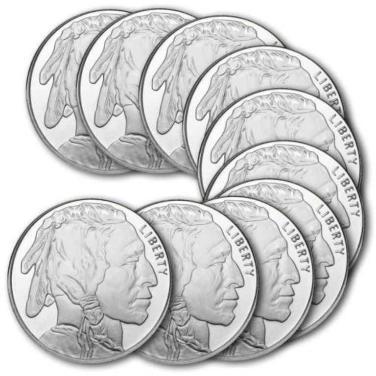 (10) 1 oz Silver Buffalo Design Rounds
