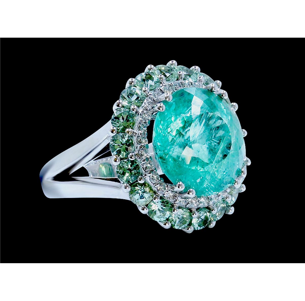 18K W/G NATURAL PARAIBA COPPER BEARING TOURMALINE RING: 13.26GRAM /PARAIBA(SIDE): 2.21CT / PARAIBA(MAIN): 10.10CT/ DIAMOND: 0.40CT /#GVR1298