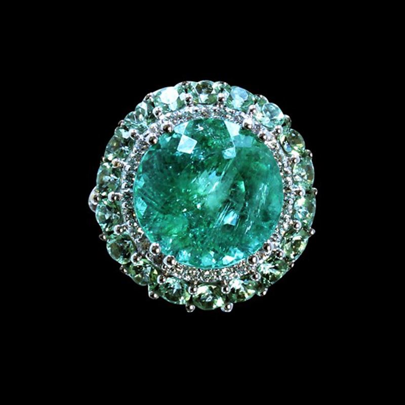 18K W/G NATURAL PARAIBA COPPER BEARING TOURMALINE RING: 13.26GRAM /PARAIBA(SIDE): 2.21CT / PARAIBA(MAIN): 10.10CT/ DIAMOND: 0.40CT /#GVR1298