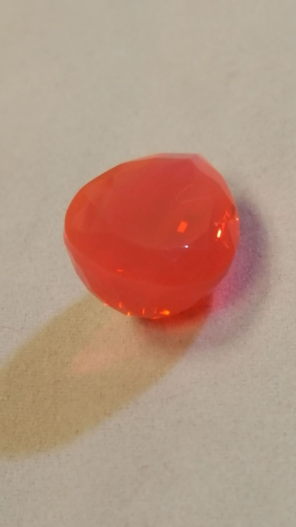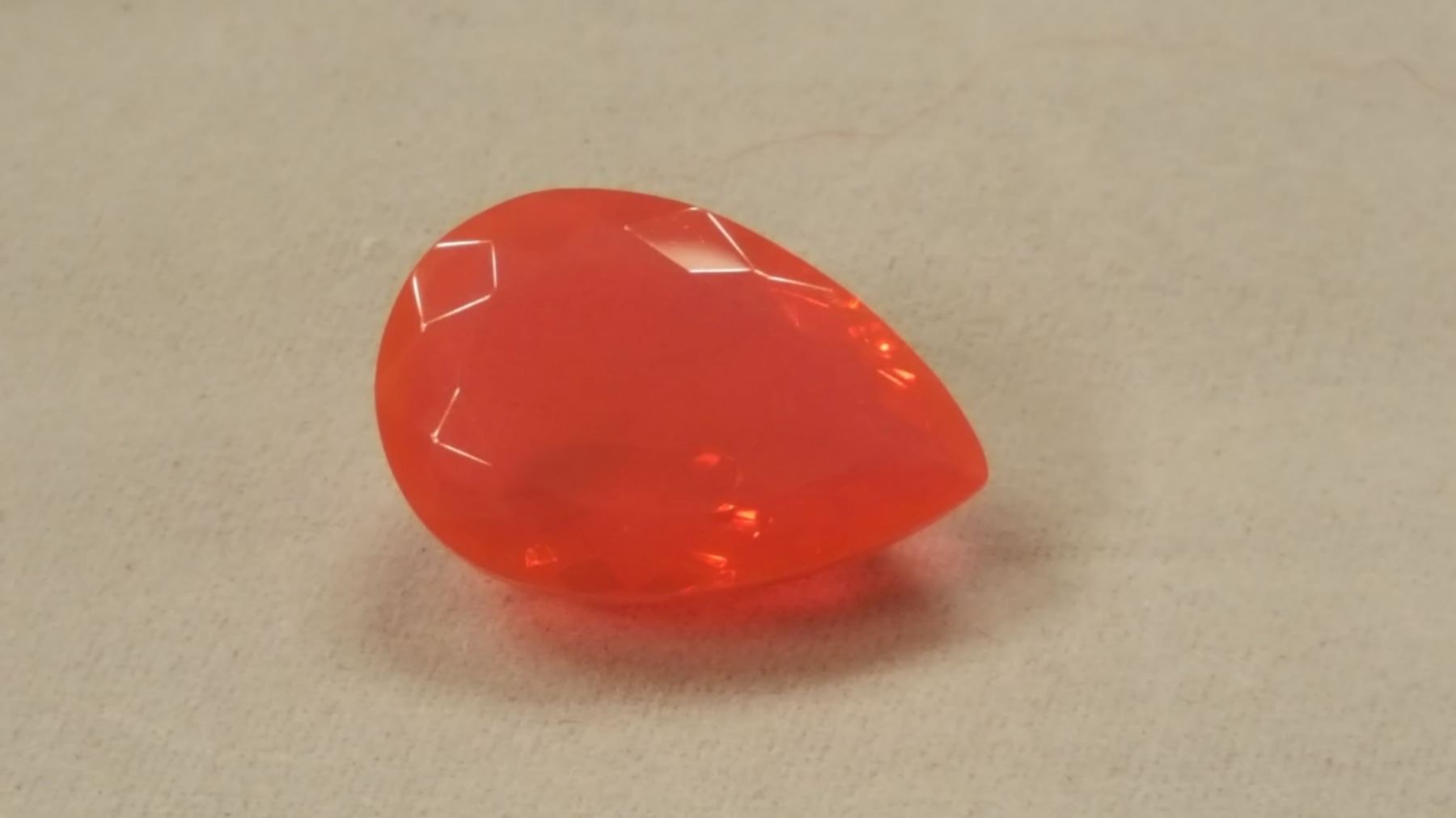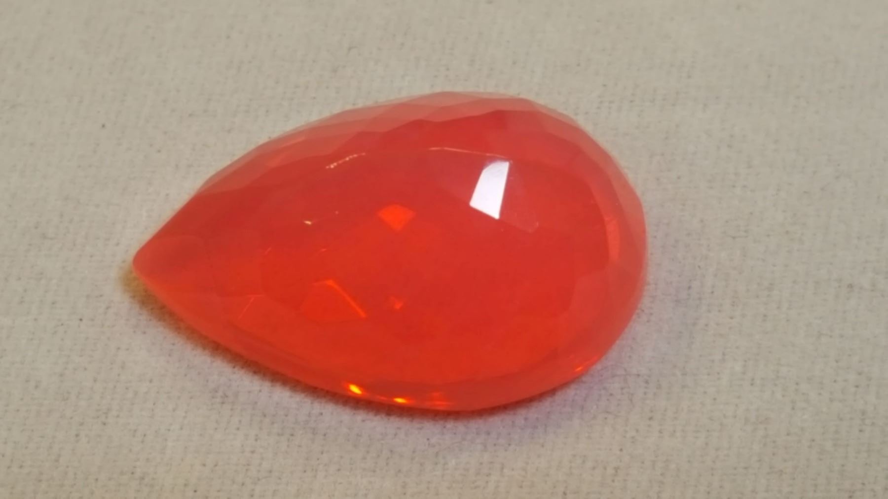 Exceptional rare investment quality large 10.10ct pink fire opal. Fine pear cut measuring 21 x 14 x mm. This fire opal displays outstanding color and vivid tone with excellent clarity. Incredible luster & brilliance. Extremely hard to find this size with vvs-1 rating. Treatment: none.
