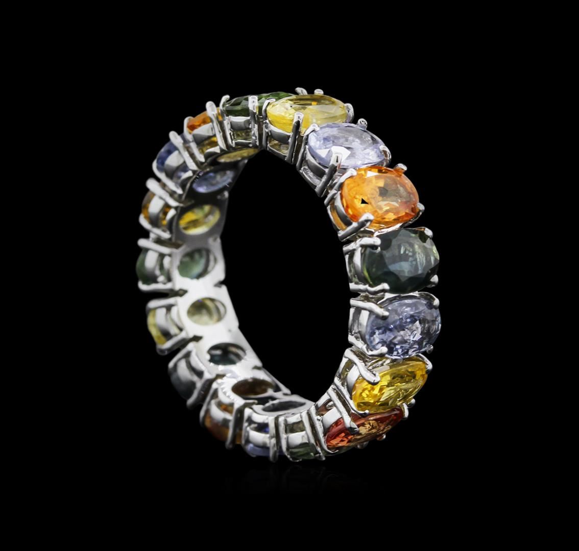 One ring featuring: 14KT white gold weighing 3.95 grams containing 17 multicolored sapphires with a total weight of 10.10ct.