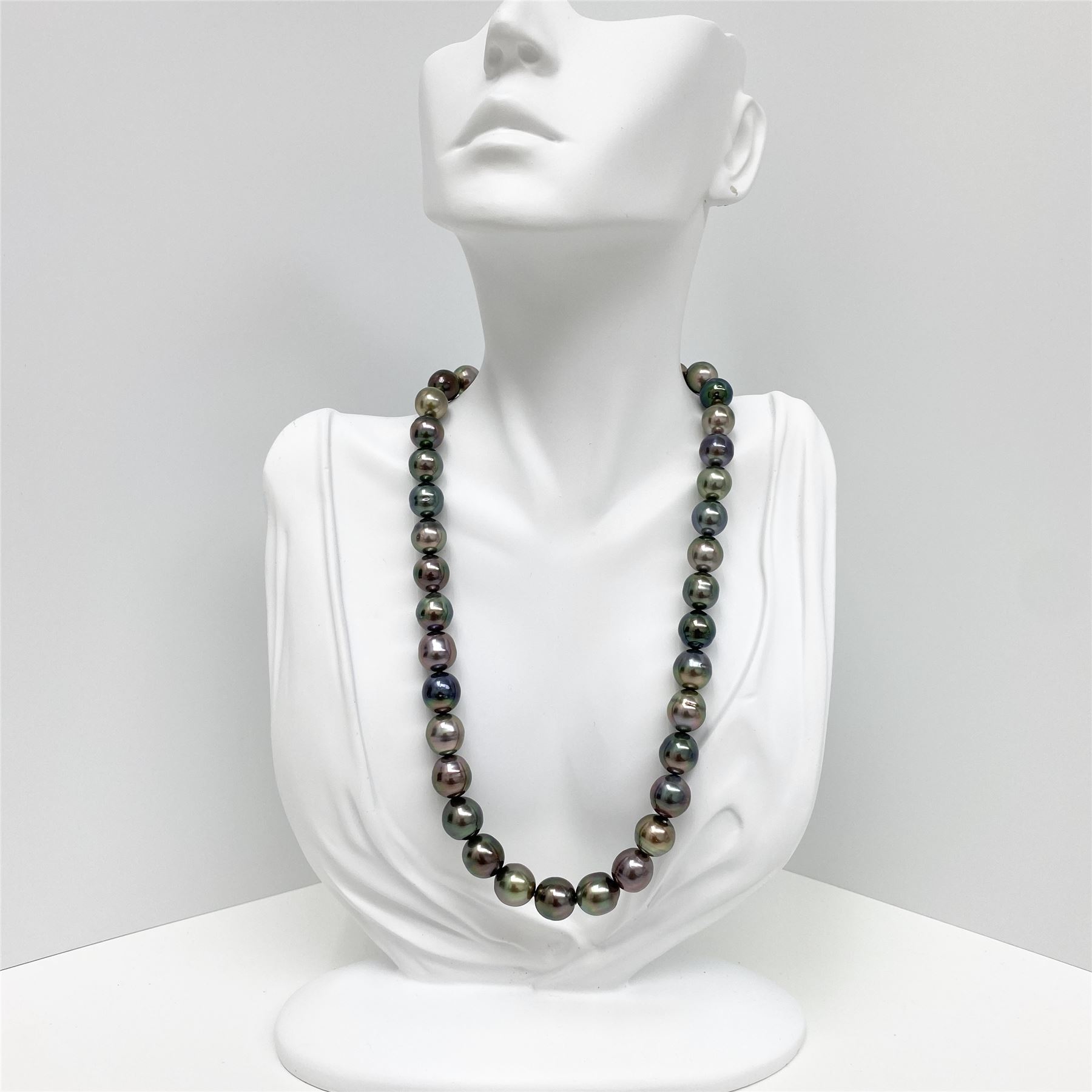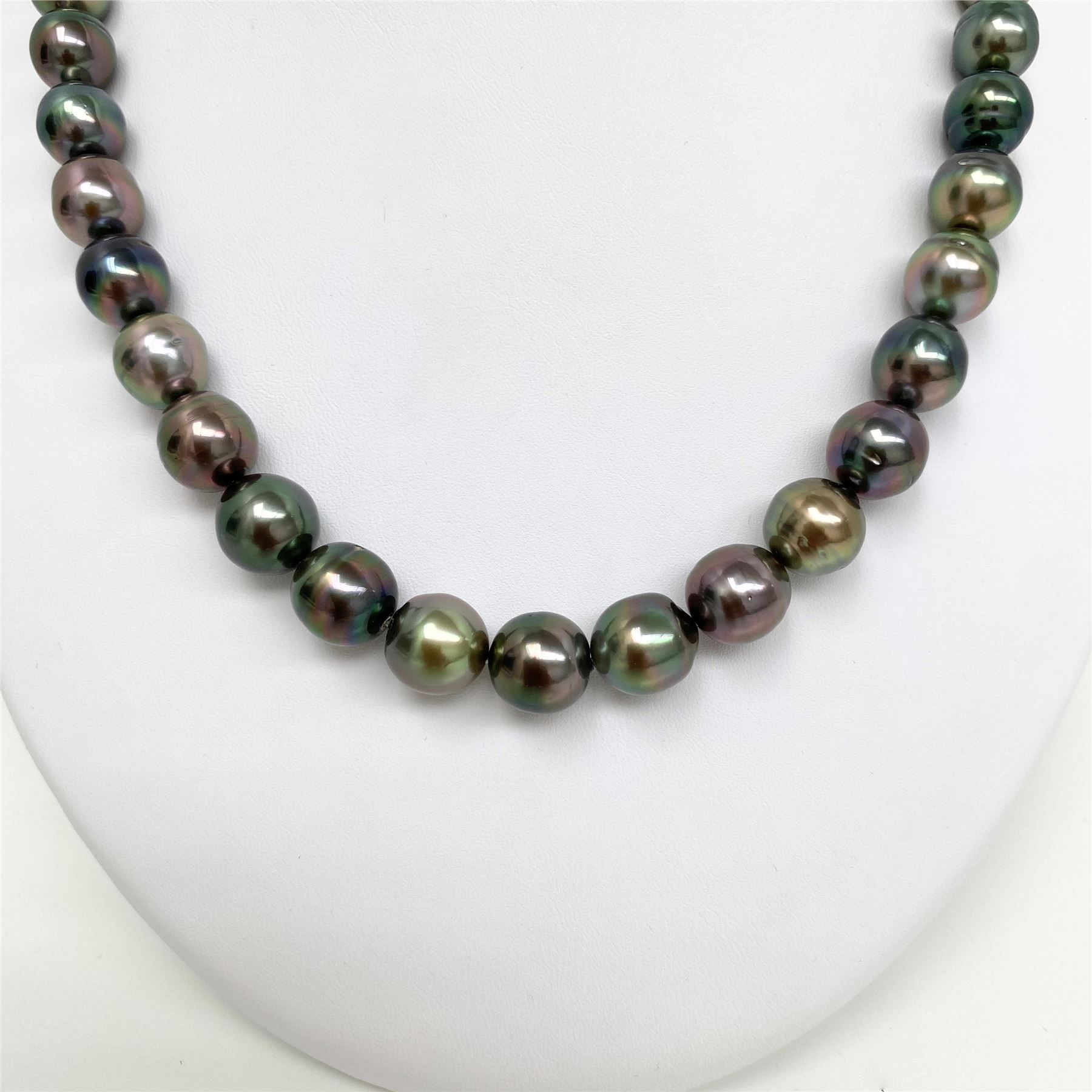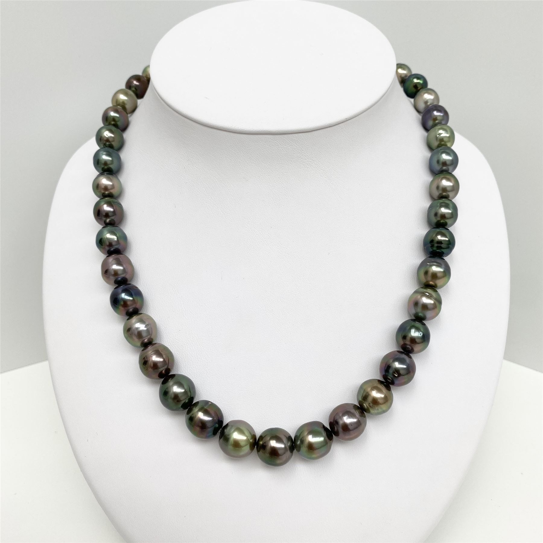 10-11mm Tahitian Multicolor Oval Pearl Necklace with Gold Clasp