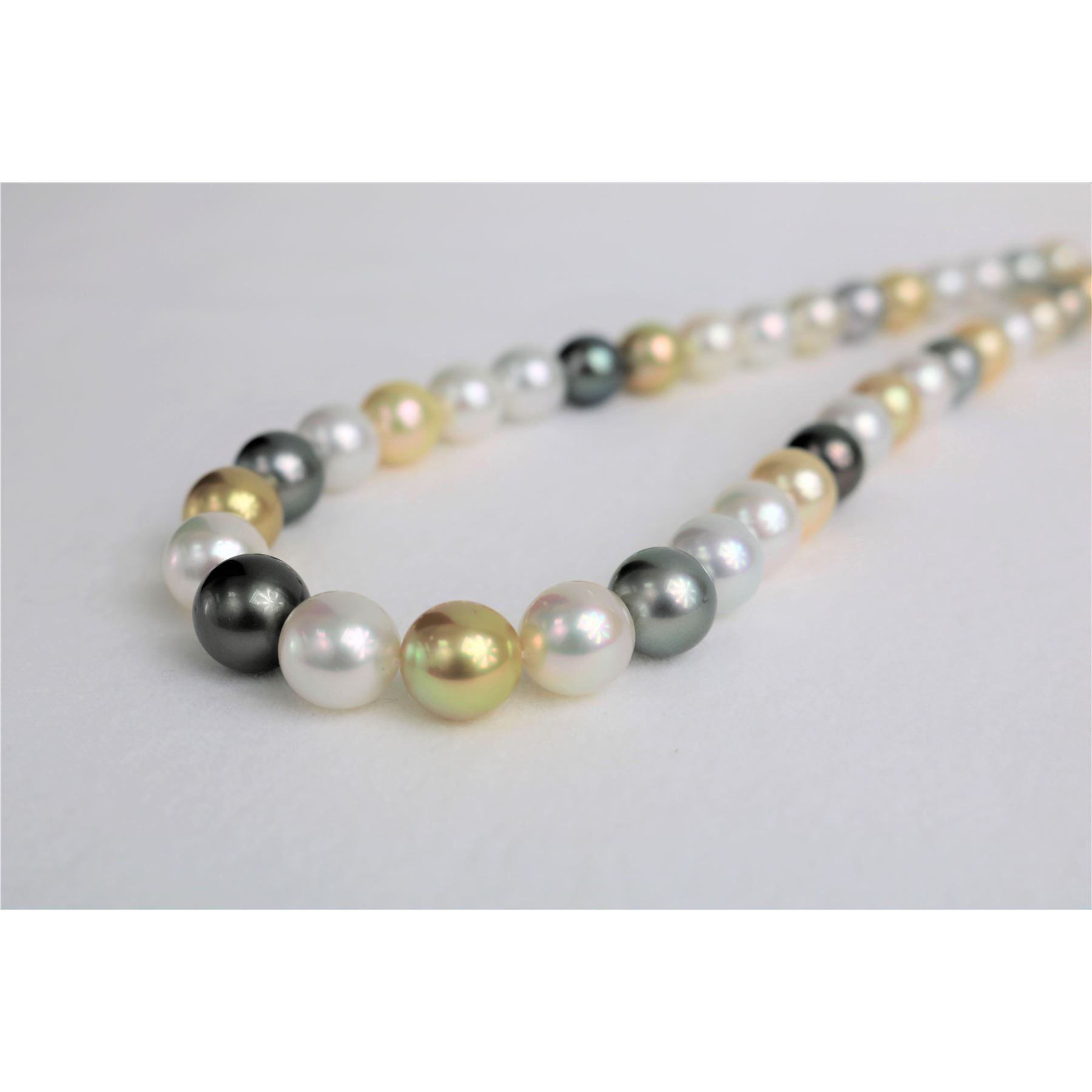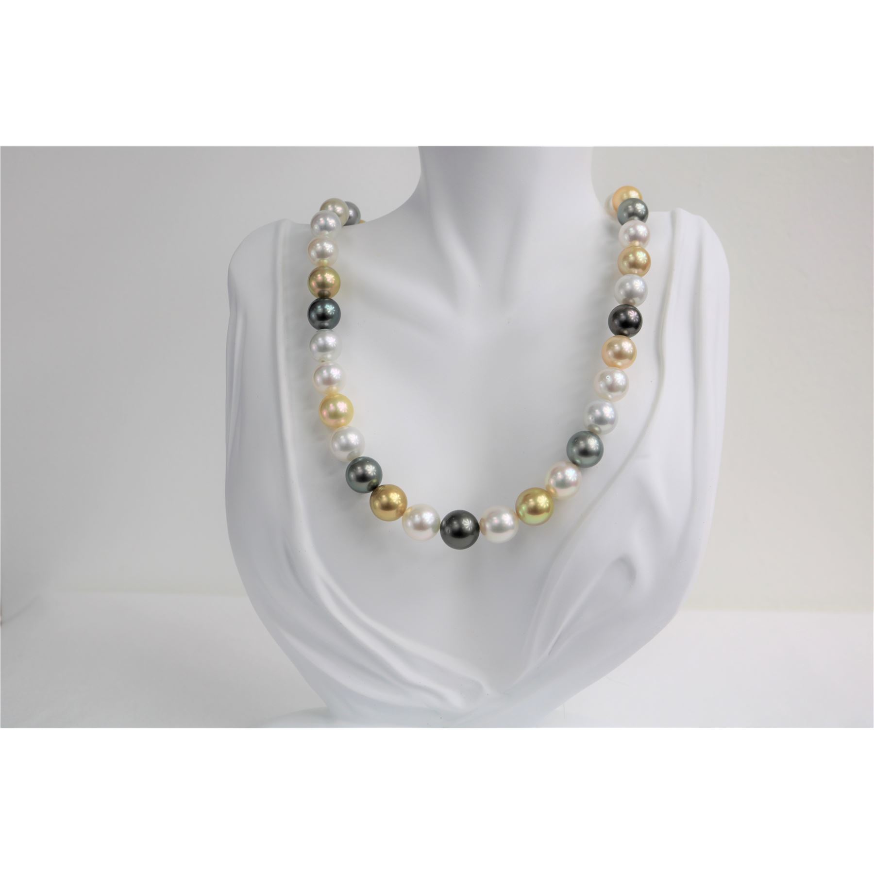 10-12mm Golden South Sea and Tahitian Multi Color Round Necklace with Gold Clasp
