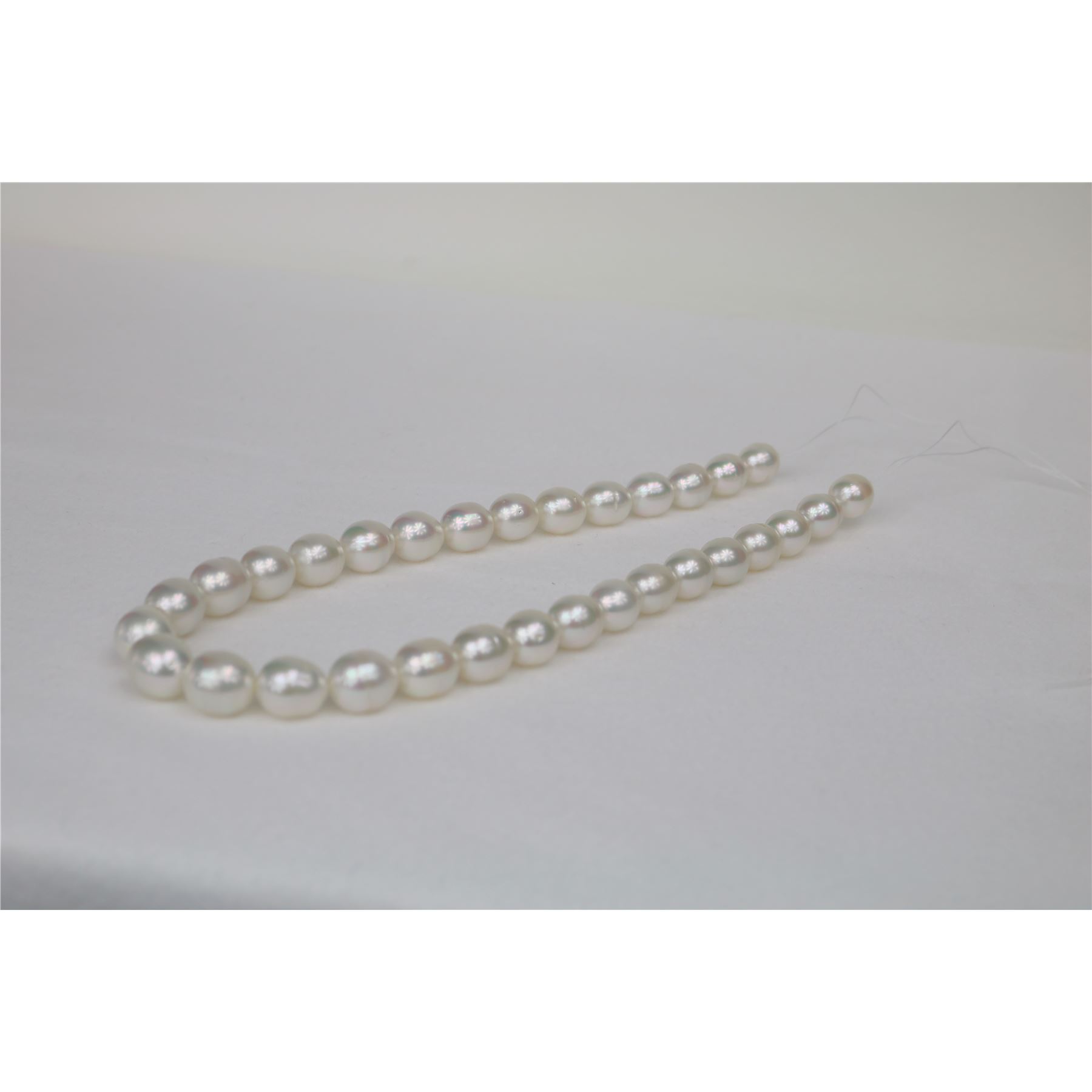 AAA Luster White-Rose South Sea Oval Necklace, 18 inches hand knotted with gold fishhook clasp #CP26