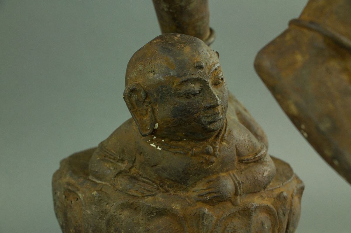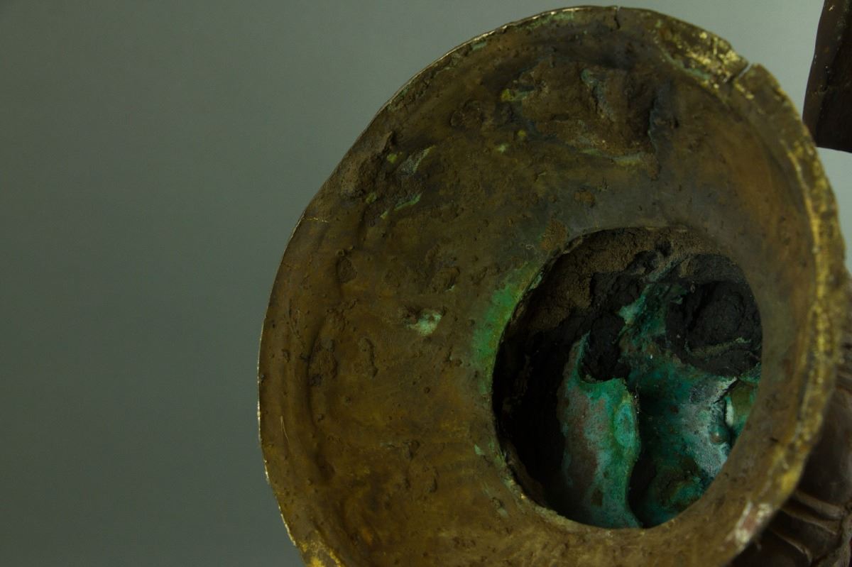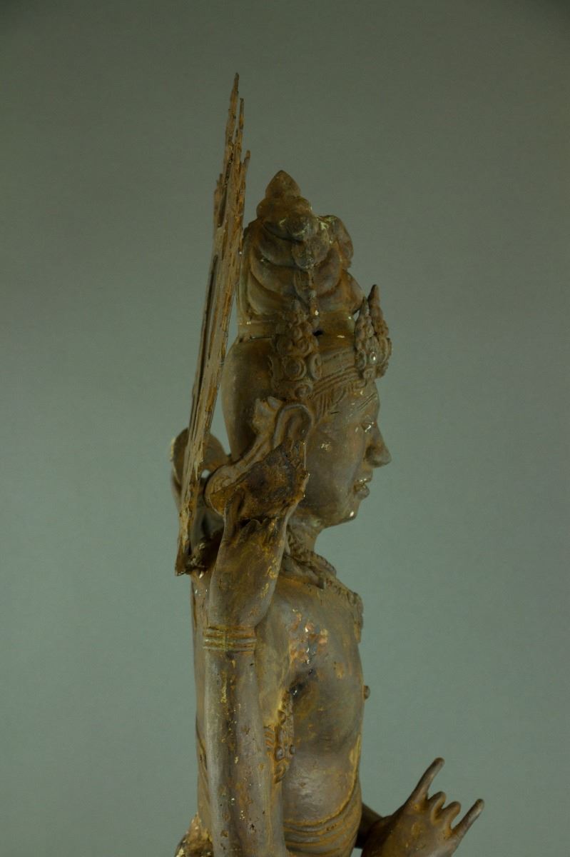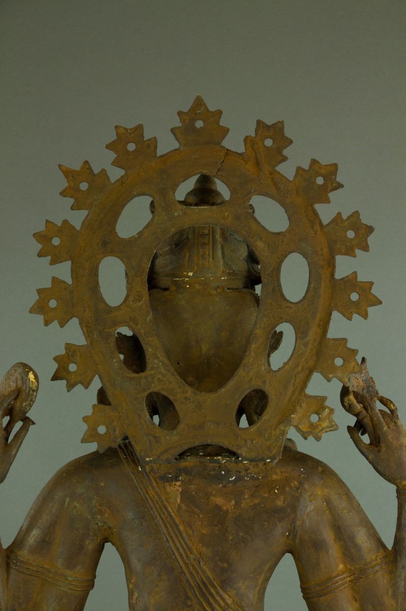 10th to 12th century bronze Hindu deity figure; depicting dancing four-armed Shiva stepped on Apasmara on a double lotus pedestal base; H: 92 cm, W: 33 cm, L: 33 cm, 8 kilograms