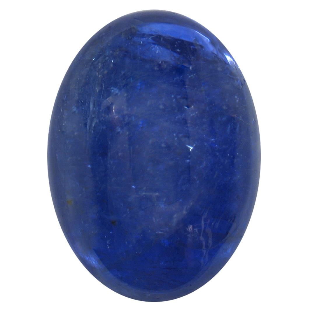 One oval cabochon cut natural tanzanite, measuring 14.00 x 10.00 x 7.00mm, exact weight 10.13ct., clarity is heavily included, type I, dark, moderately strong, blue color, (GIA B 7/4), cut is good. Transmitting light somewhat diffusely, transparent to translucent. Naturally occurring internal & external characteristics are present. Indications of heat treatment. Westfield Appraised at $975.00.