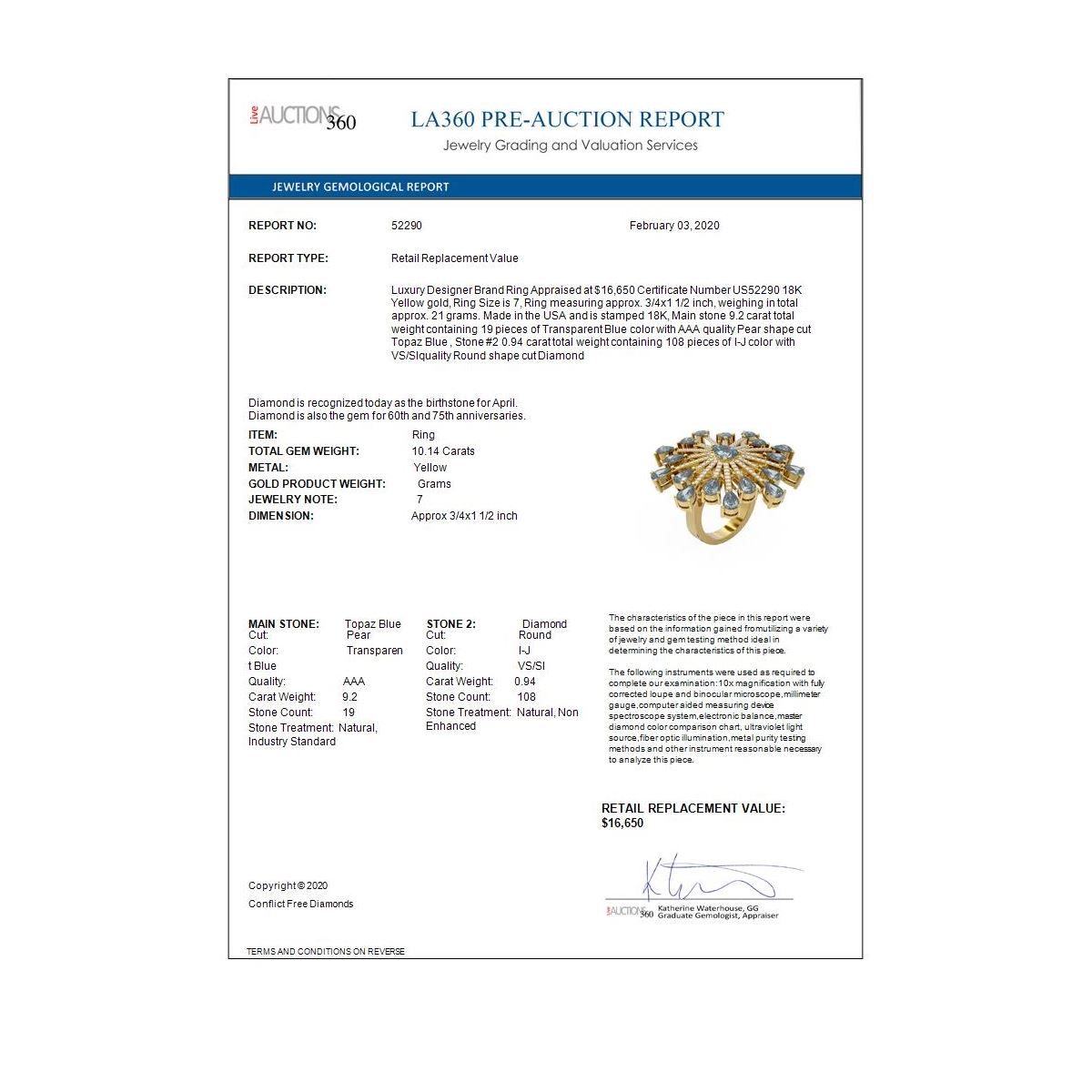 REF-432A8N - SKU: 52290 ---- 10.14 ctw Blue Topaz & Diamond Ring 18K Yellow Gold