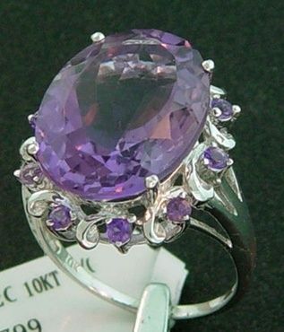 10.15 Ct Genuine Amethyst Ring In 10k White Gold