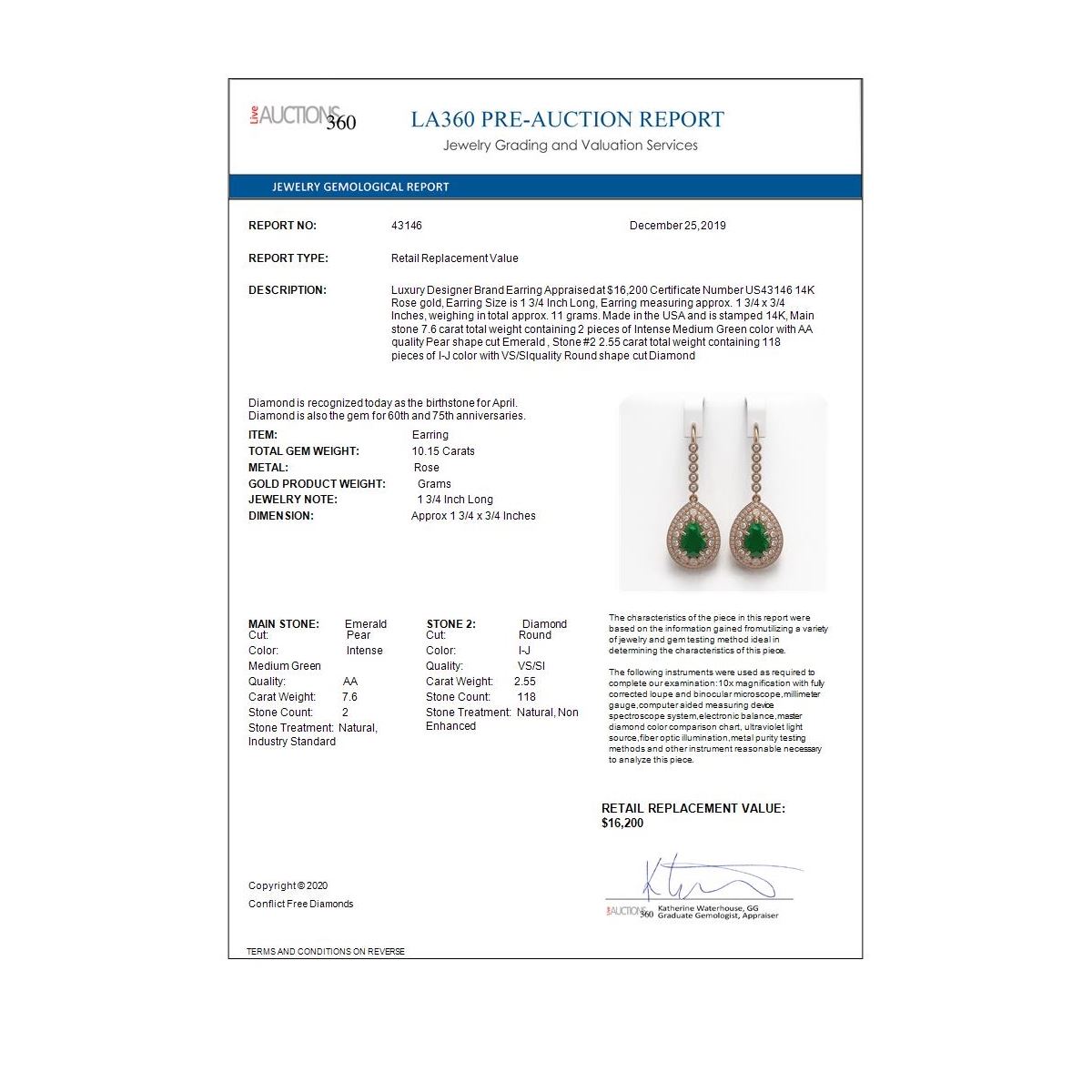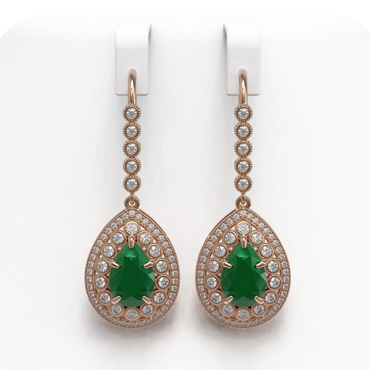 REF-327M3G - SKU: 43146 ---- 10.15 ctw Certified Emerald & Diamond Victorian Earrings 14K Rose Gold