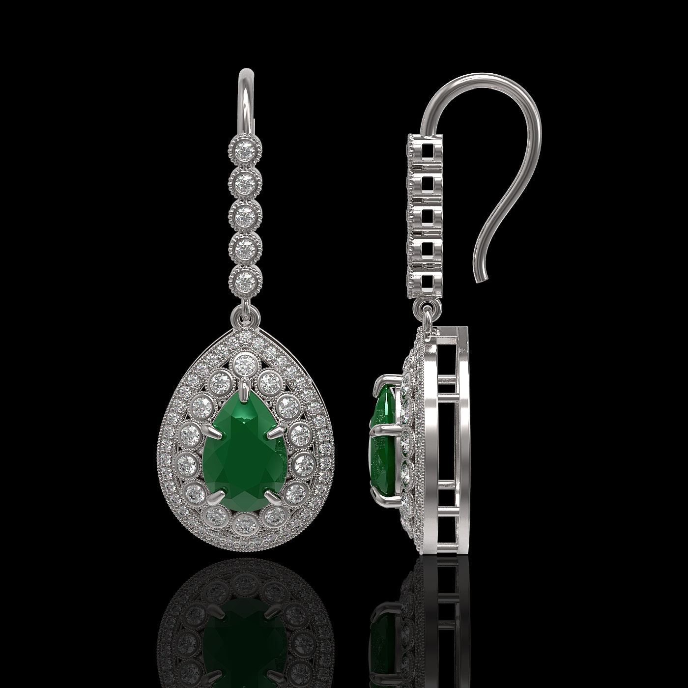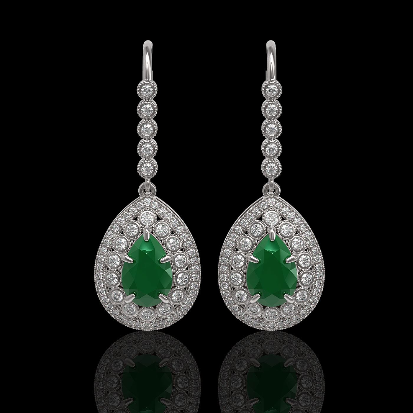 REF-327H3R - SKU: 43145 ---- 10.15 ctw Certified Emerald & Diamond Victorian Earrings 14K White Gold