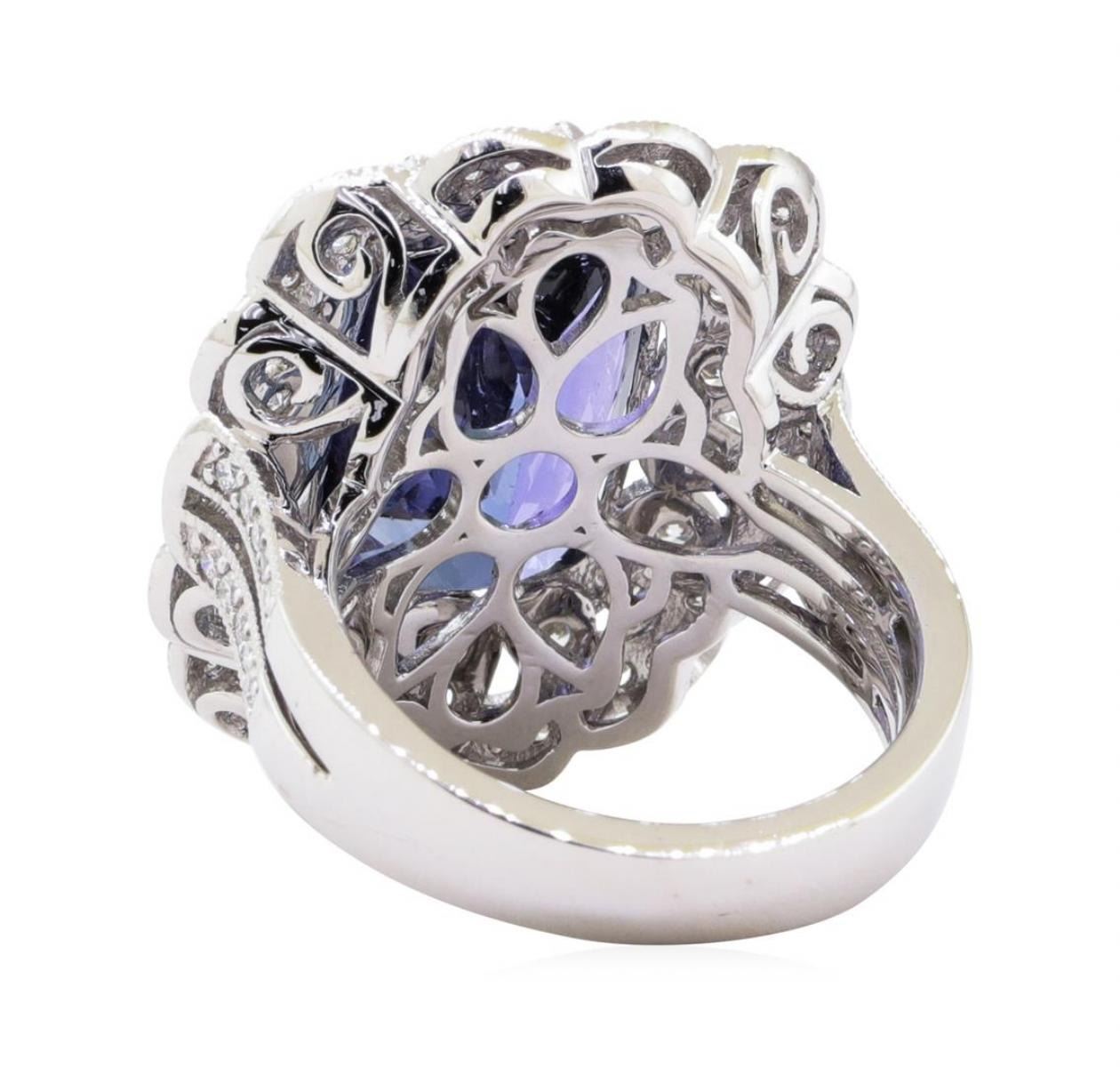 One electronically tested platinum ladies cast & assembled tanzanite & diamond ring. The ring features a tanzanite set within an elegant diamond frame, supported by an elaborate lattice under gallery and diamond set split shoulders, completed by a four millimeter wide band. Bright polish finish with milgrain detailing. Trademark is Orianne. Identified with markings of "PT950". Condition is new, good workmanship. Containing: One prong set cushion modified brilliant cut natural tanzanite, measuring 14.49 x 10.88 x 6.89mm, exact weight 10.17ct., type I Clarity is eye clean, medium dark, very slightly grayish, violet-blue color, (GIA VB 6/3), cut is good. Transmitting light with no distortion, transparent. GIA Gemological Report attached. Graded loose prior to setting in the GIA Laboratory, Report #5171870499.Tanzanite is a very rare gemstone that is only found in the country of Tanzania. Originally discovered in 1967. Tiffany & Company, named the stone Tanzanite. It is found in the Usumburu Mountains that border the Umba Valley of northern Tanzania. Tanzanite occurs in gray, brown, violet, blue, reddish-purple, & green. The gem is interesting because of its exceptional pleochroism. Rotated in different directions a tanzanite will exhibit multiple changes of color. Tanzanite has a low tolerance to ultrasonic cleaning, and should not be cleaned using this method. Seventy-Six prong set round brilliant cut diamonds exact total weight 76 Stones = 1.07ct. Graded in the setting. Clarity VS-2 to SI-2 Color F - H Total Weight of Colored Stones 10.17 ct. Total Weight of Diamonds 1.07 ct. Total Weight of Ring 18.20 gm Estimated Retail Value $ 32,191.00 US