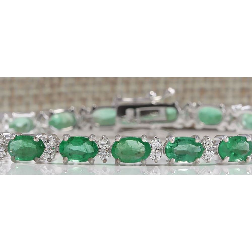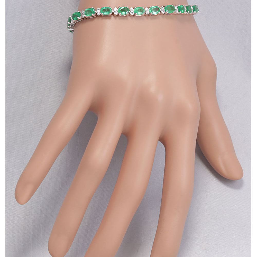 10.17CTW Natural Colombian Emerald And Diamond Bracelet In 14K White Gold
