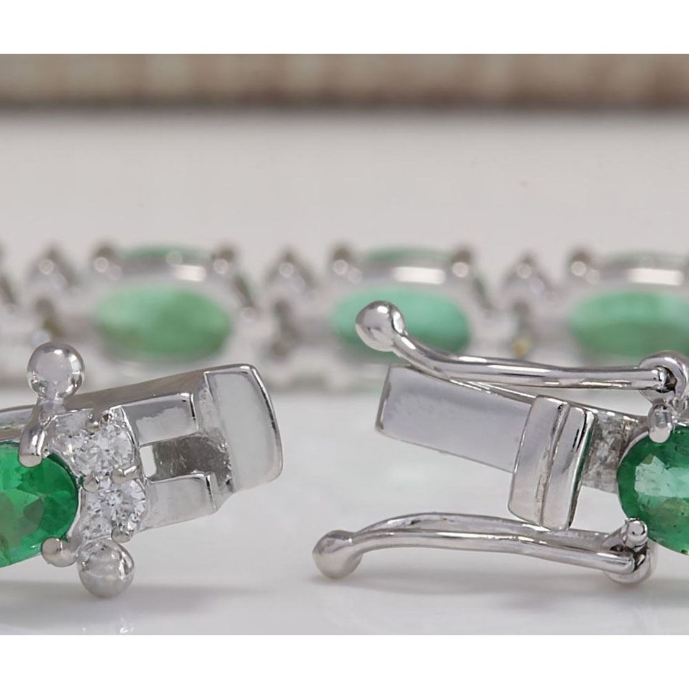 10.17CTW Natural Colombian Emerald And Diamond Bracelet In 18K White Gold